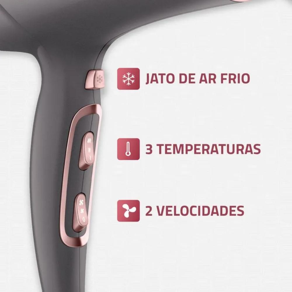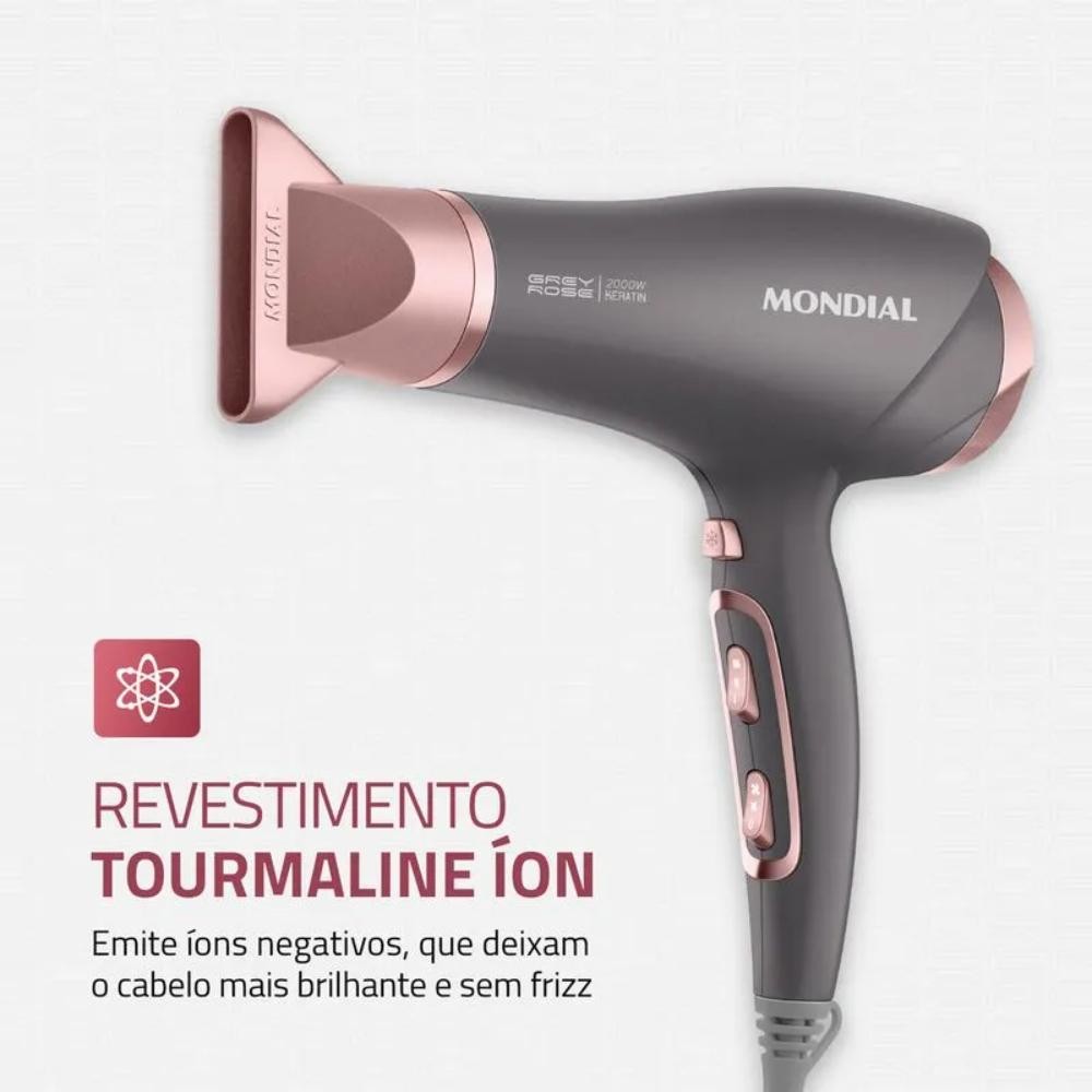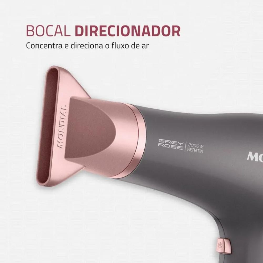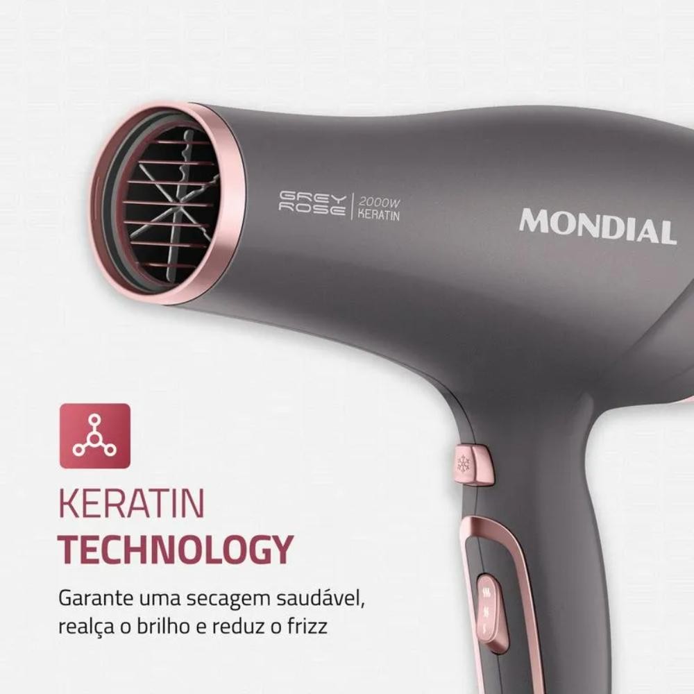 Secador de Cabelos Mondial Grey Rose Keratin 3 Velocidades 2 Temperaturas Cinza/Rosa 127V - SCN-11