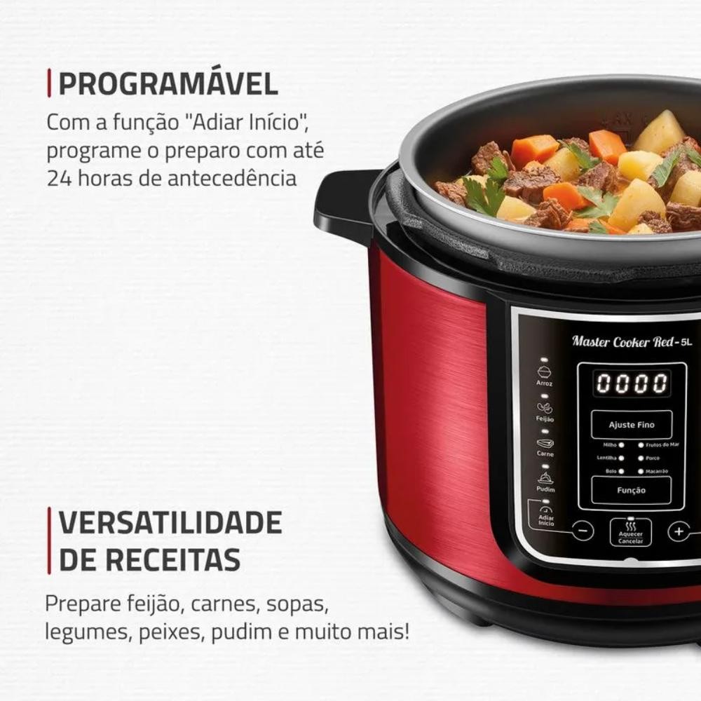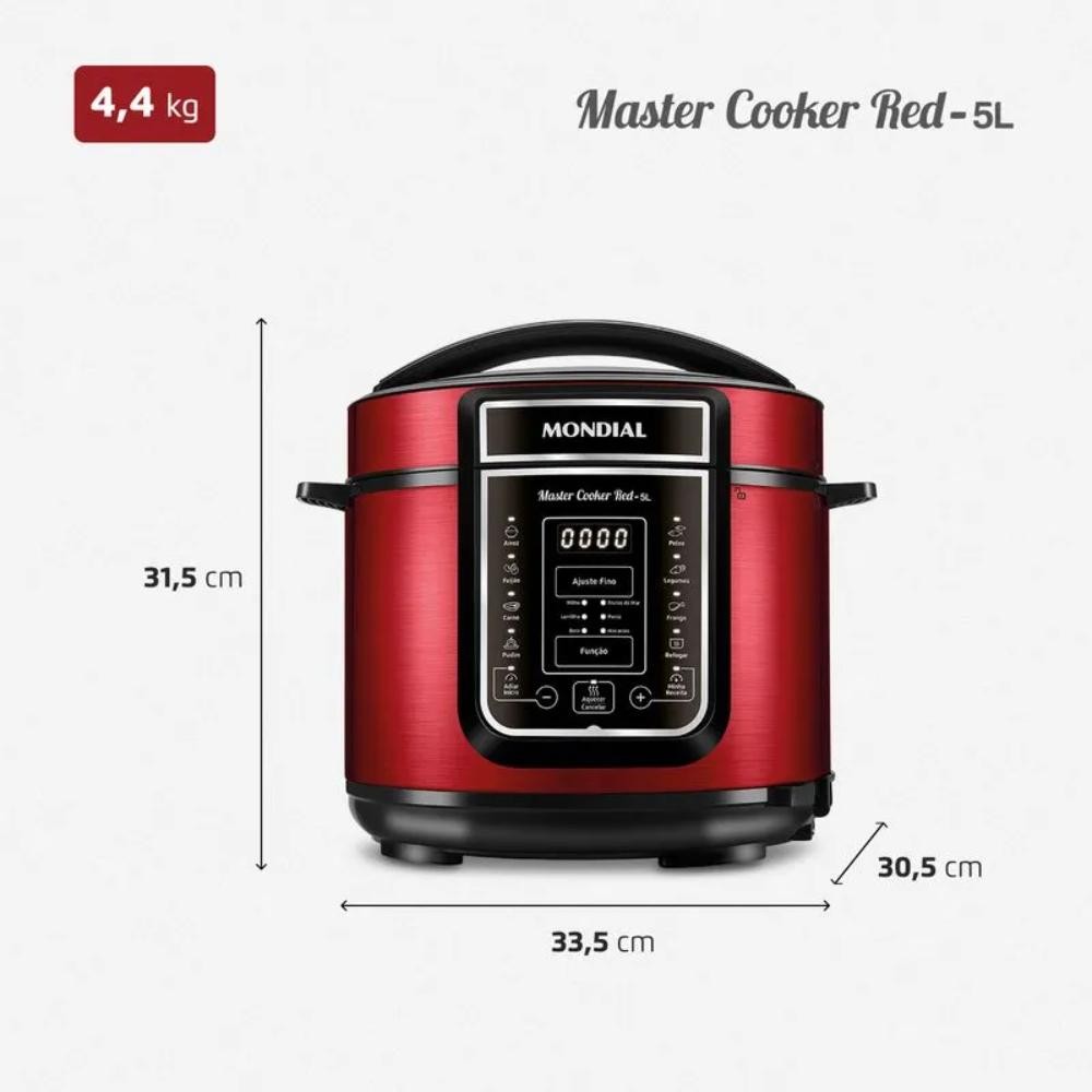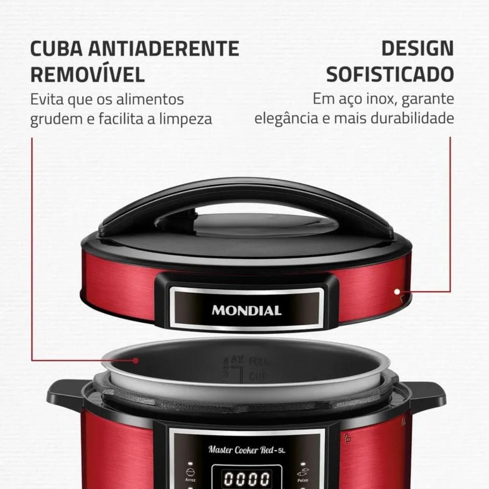 Panela de Pressão Elétrica Mondial Digital Master Cooker Red 5L 900W Vermelho/Inox 127V - PE-39