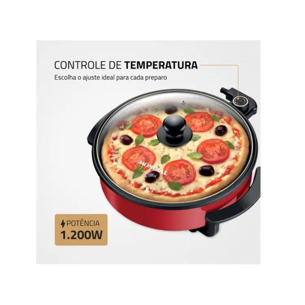 Panela Elétrica Mondial Multifuncional com Grill Redonda Multicook Red 1200W 220V - PE-28