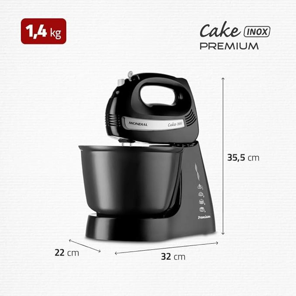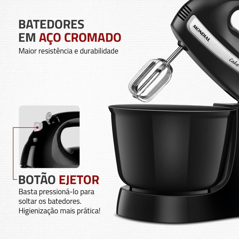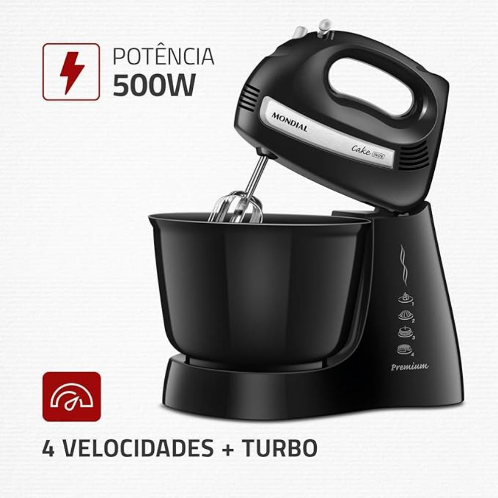 Batedeira Mondial Cake Premium 4 Velocidades + Turbo 500W Preto 220V - B-50-B