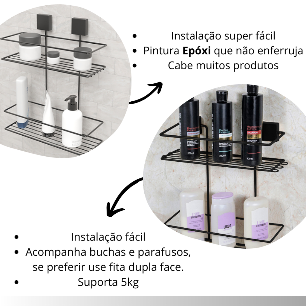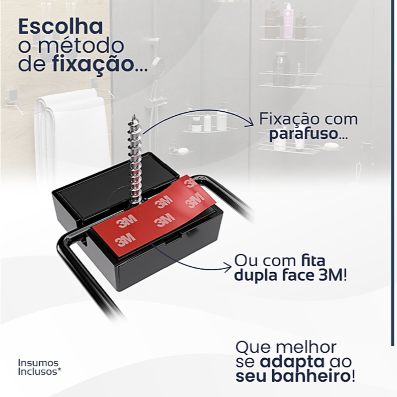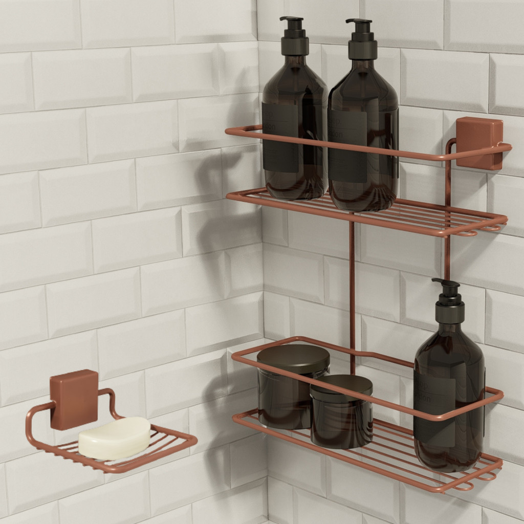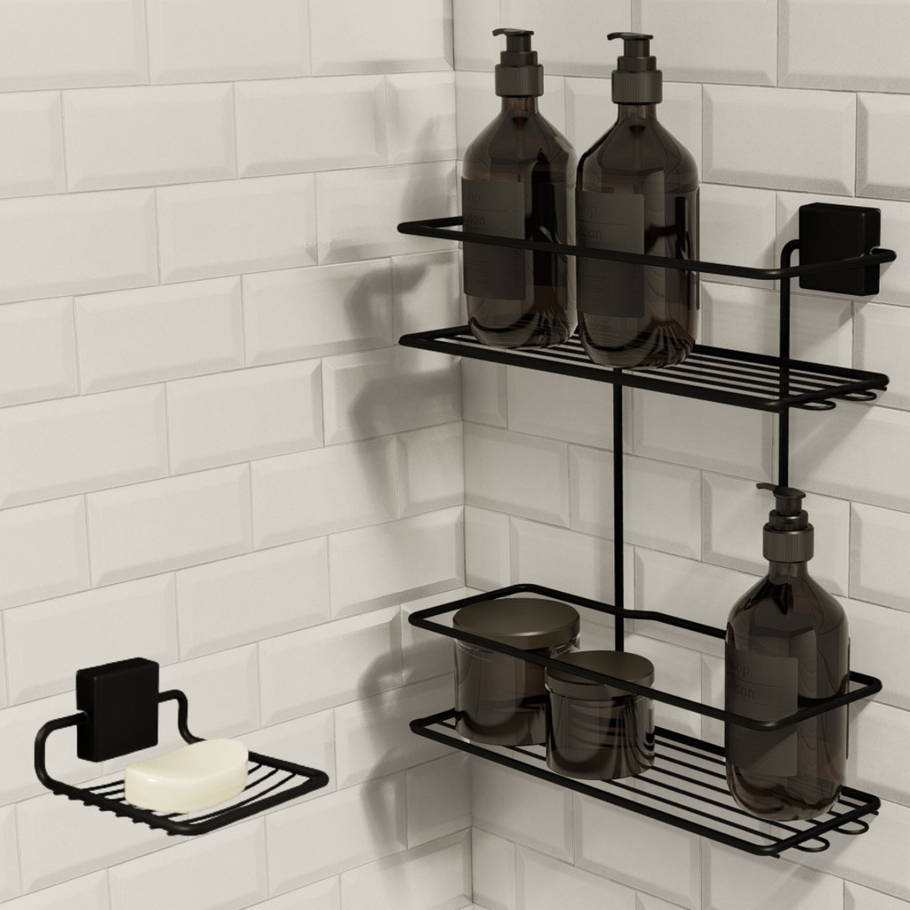 Kit Porta Shampoo e Saboneteira Adesivo 3M Dupla Face 2 Acessórios Banheiro Premium Fixo
