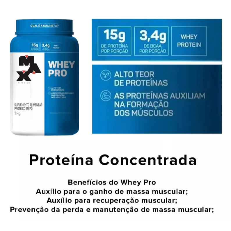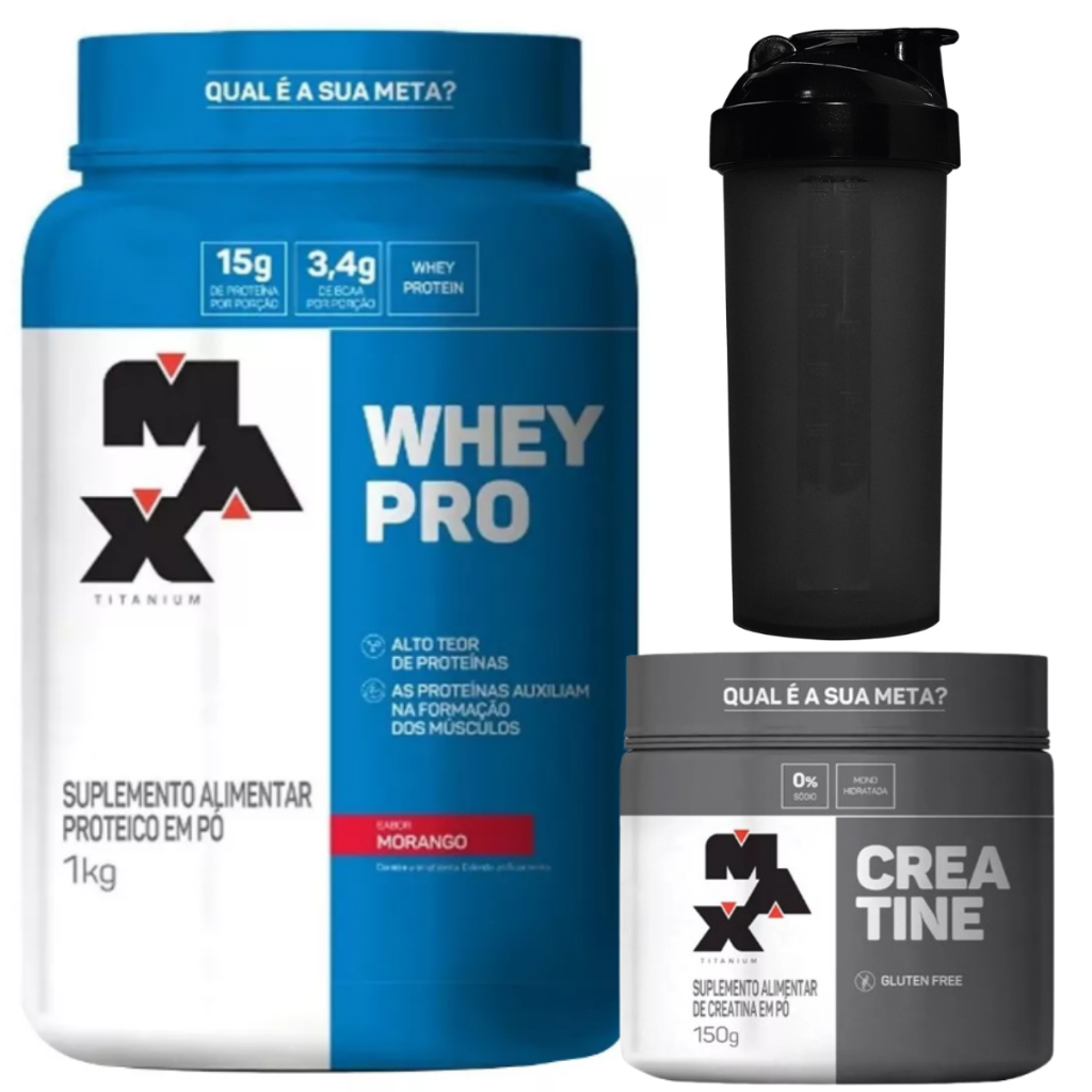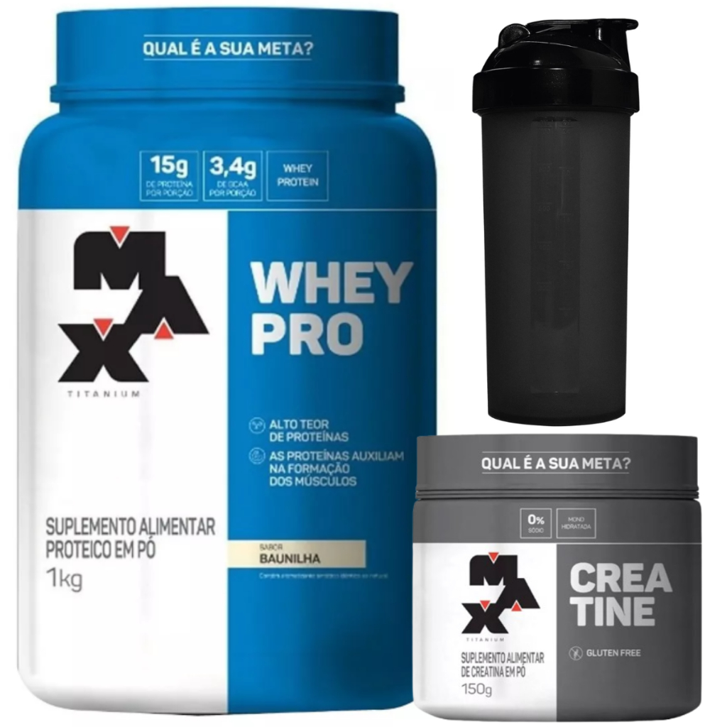 Combo Whey Protein 1kg E Creatina 150g + Coqueteleira - Max Titanium Suplementos