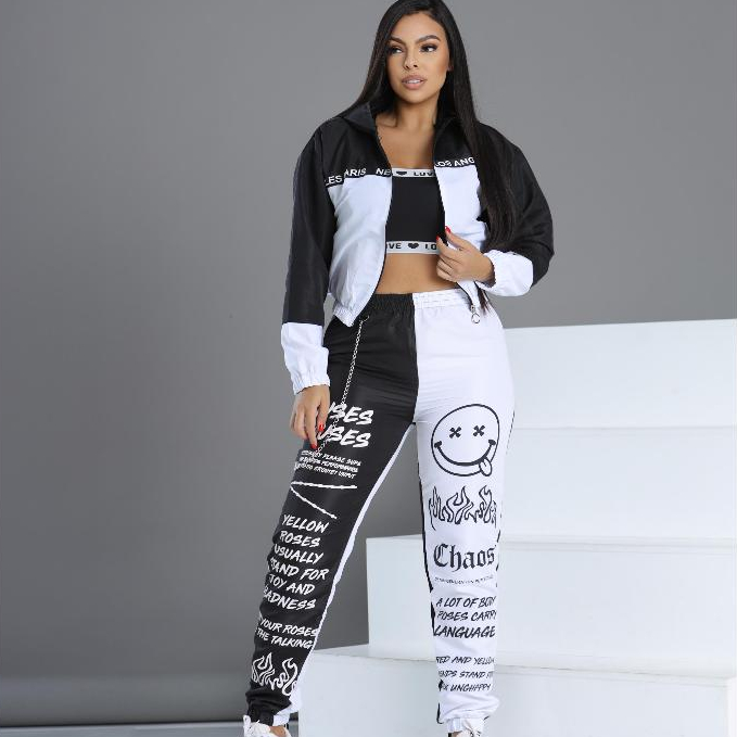 CONJUNTO JOGGER FEMININA TACTEL SMILE COM CORRENTE MODA GRINGA 2024