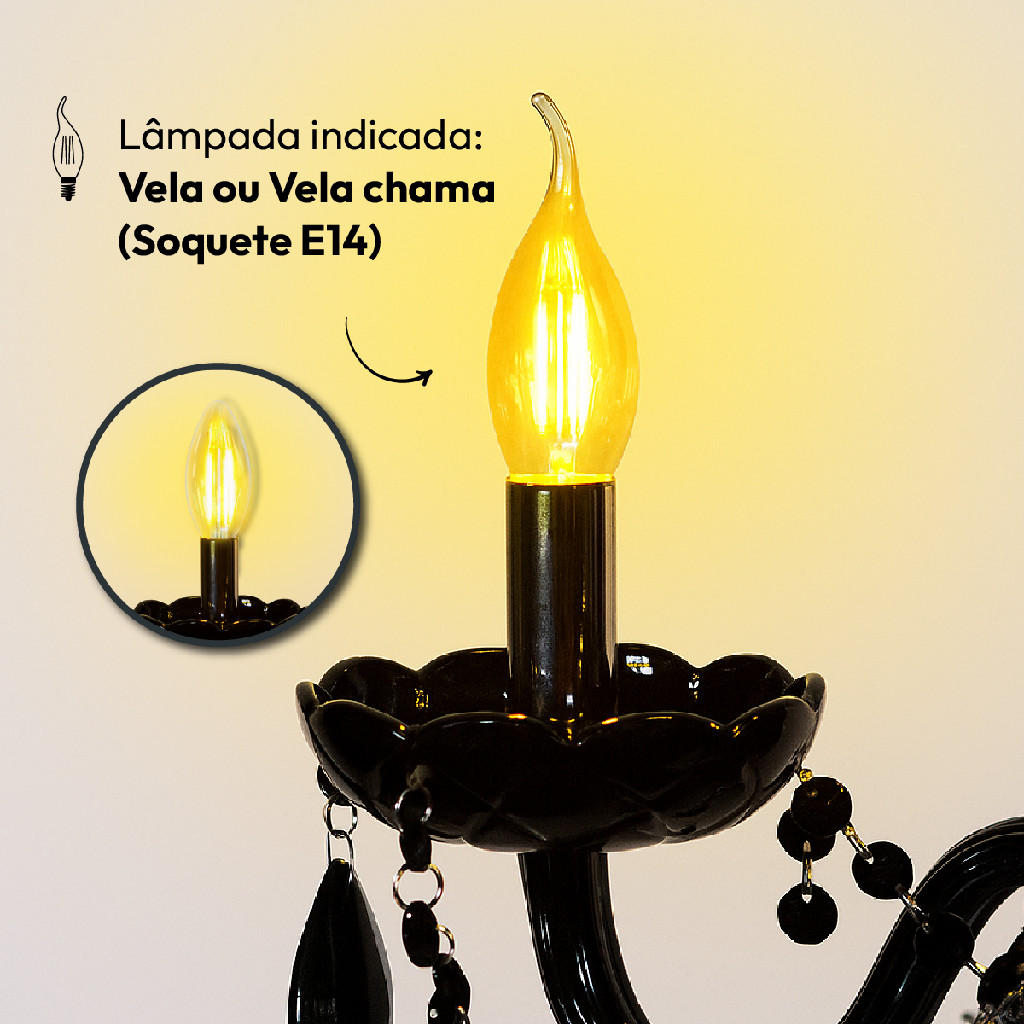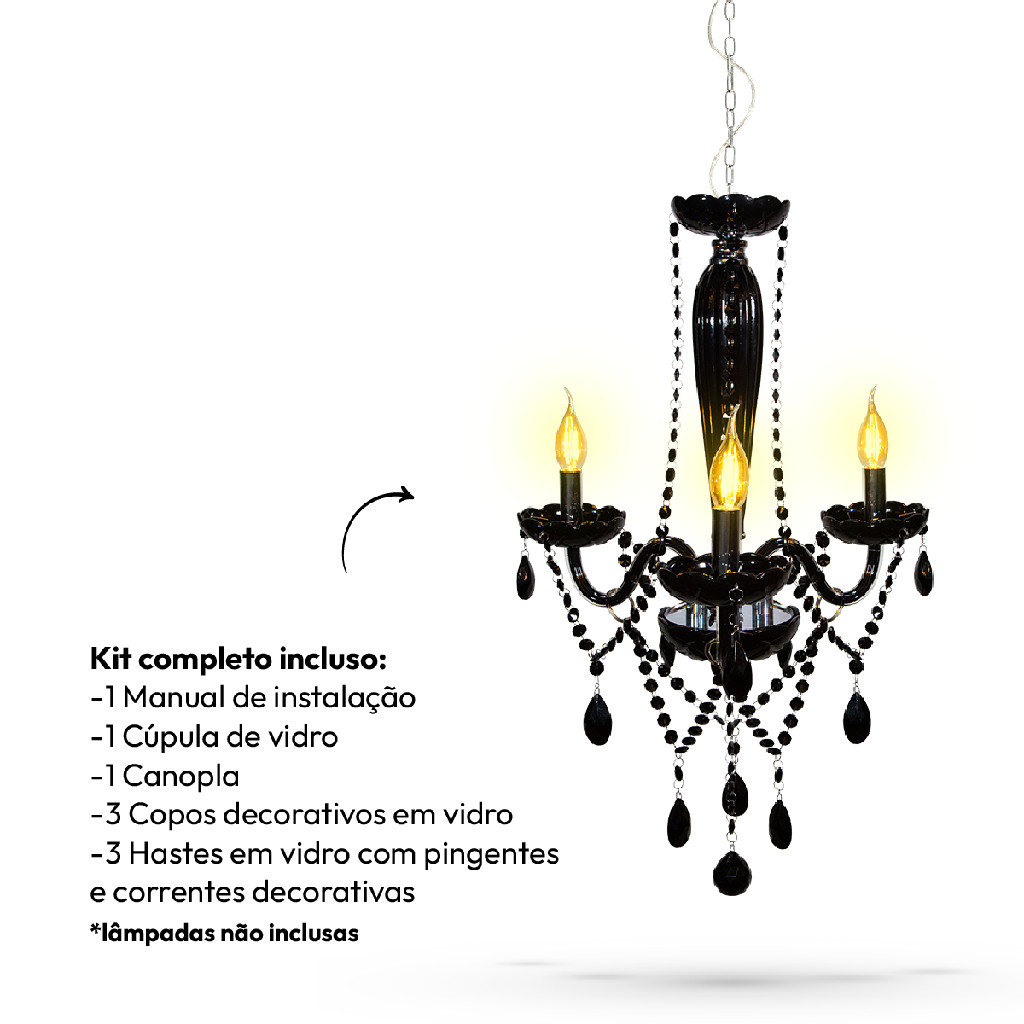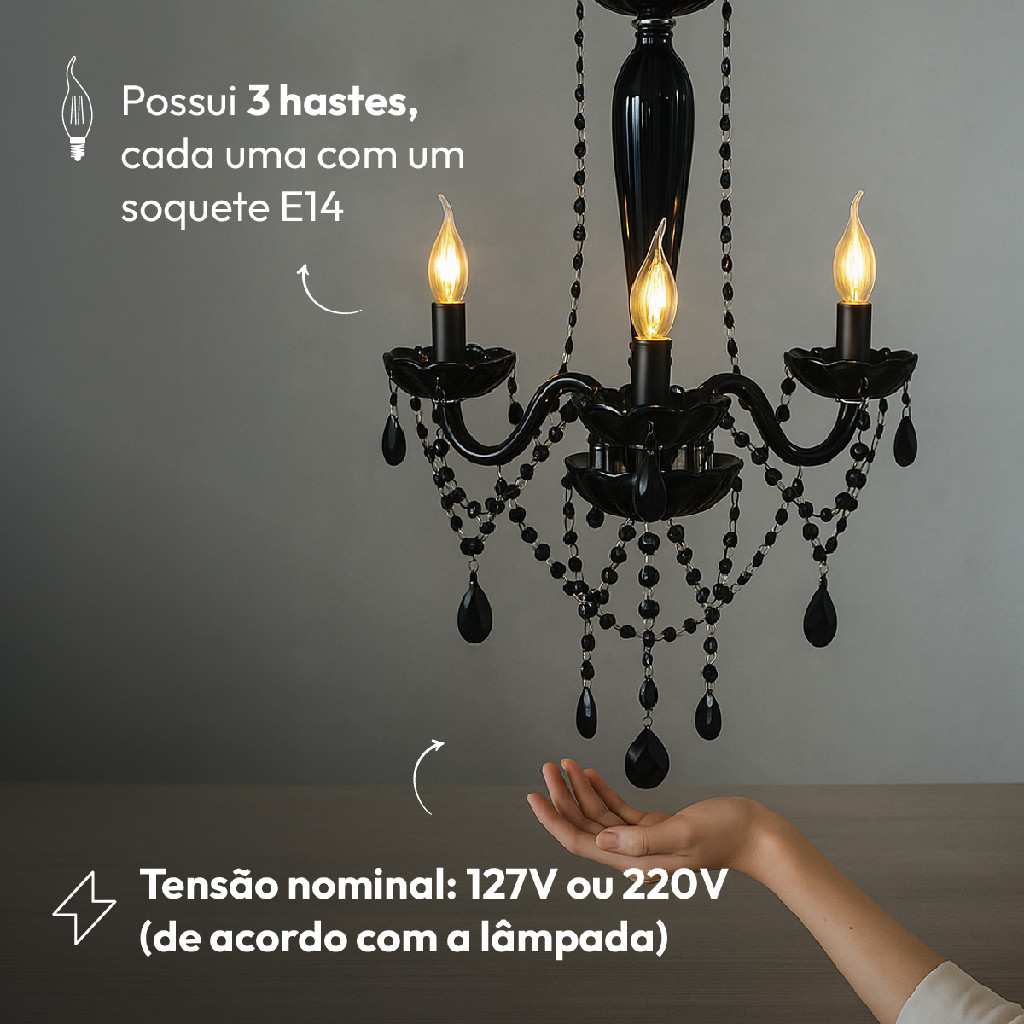 Lustre Luminaria led Maria Thereza p/ 3 Lampadas E14 Preto Brilho Cod: ALUT010050 Alut By Avant