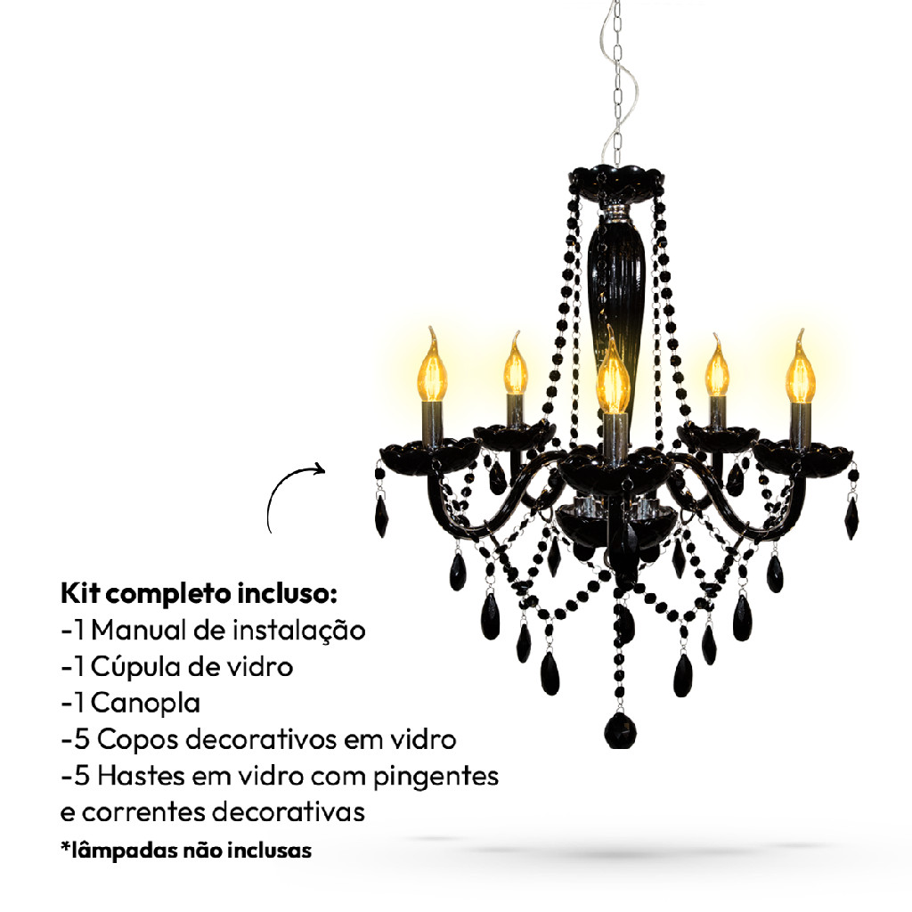 Lustre Luminaria led Maria Thereza p/ 5 Lampadas E14 Preto Brilho Cod: ALUT010051 Alut By Avant