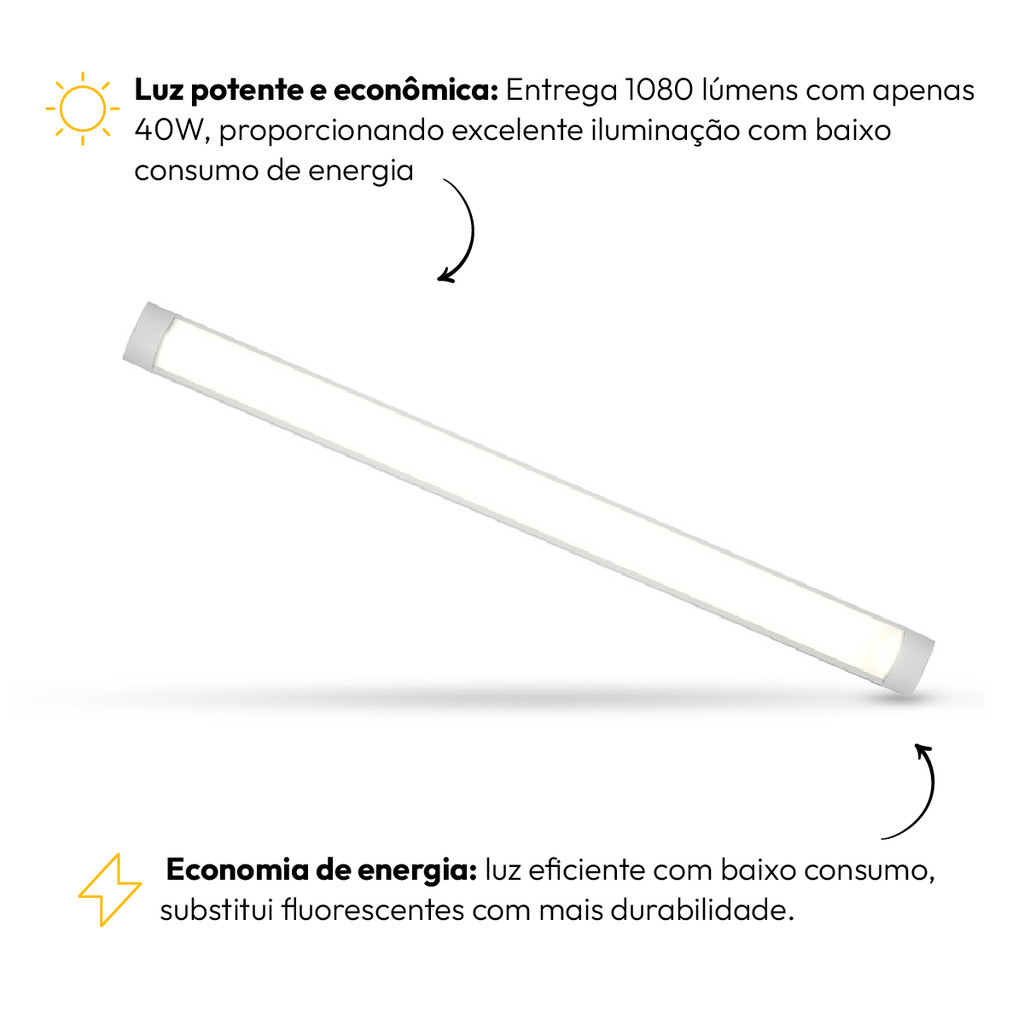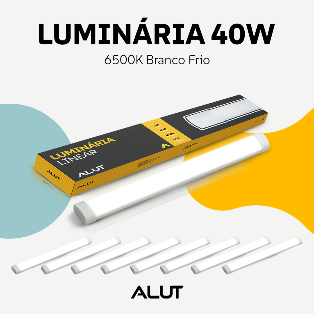 Kit 10 Luminarias Led Linear 20w ou 40W 6500K Branco Frio 110v/220v Branco Alut By Avant