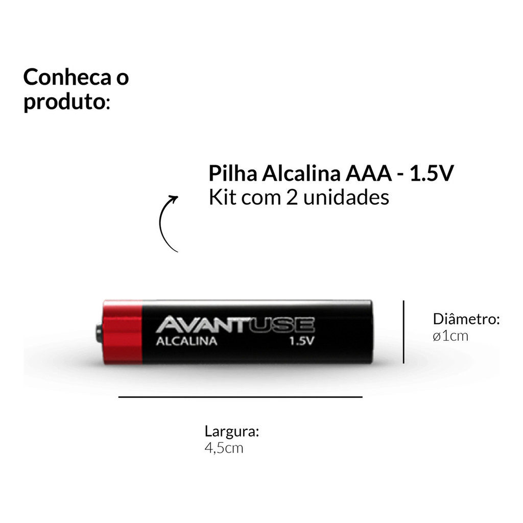 Kit 2 Pilhas Alcalina Palito AAA 1.5v Cod: 408040013 Avant Use