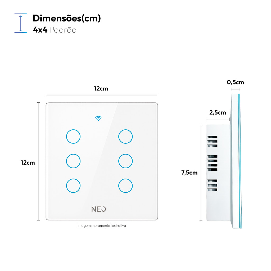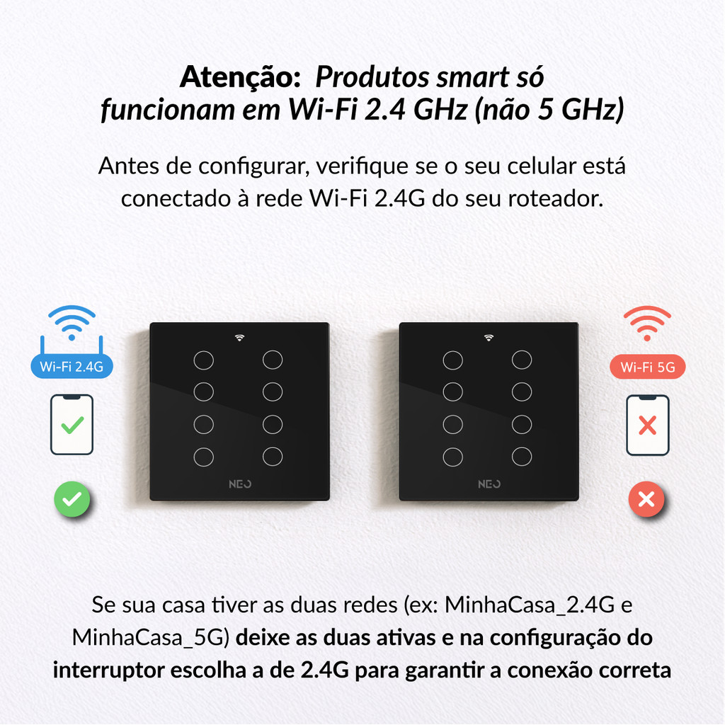 Interruptor Inteligente Touch WiFi 2.4GHz Alexa 1 à 8 Botão Digital Touch Bivolt Neutro Paralelo Neo