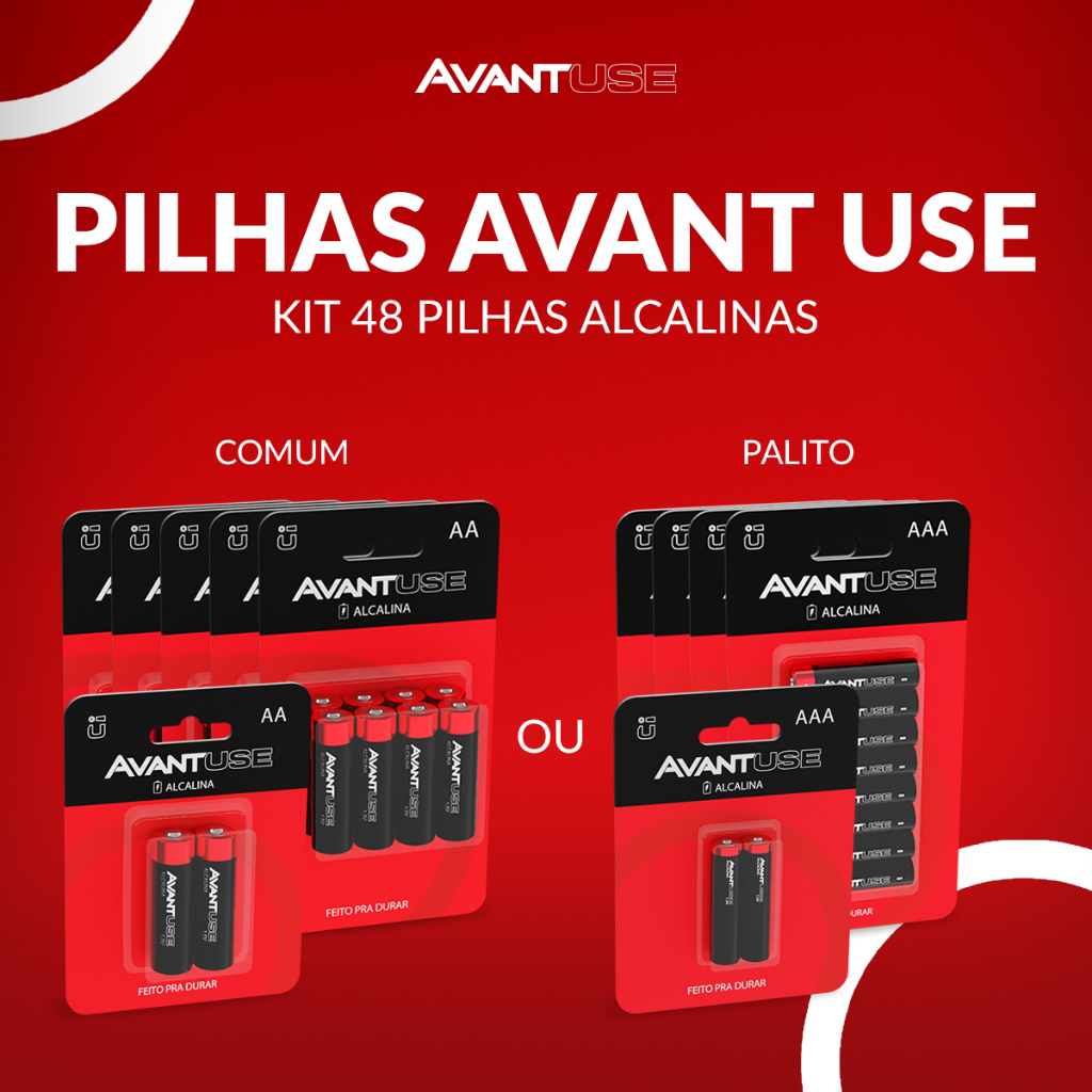 Kit 16, 24, 32, 48 ou 128 Pilhas Alcalina Palito AAA ou Comum AA 1.5v Avant Use