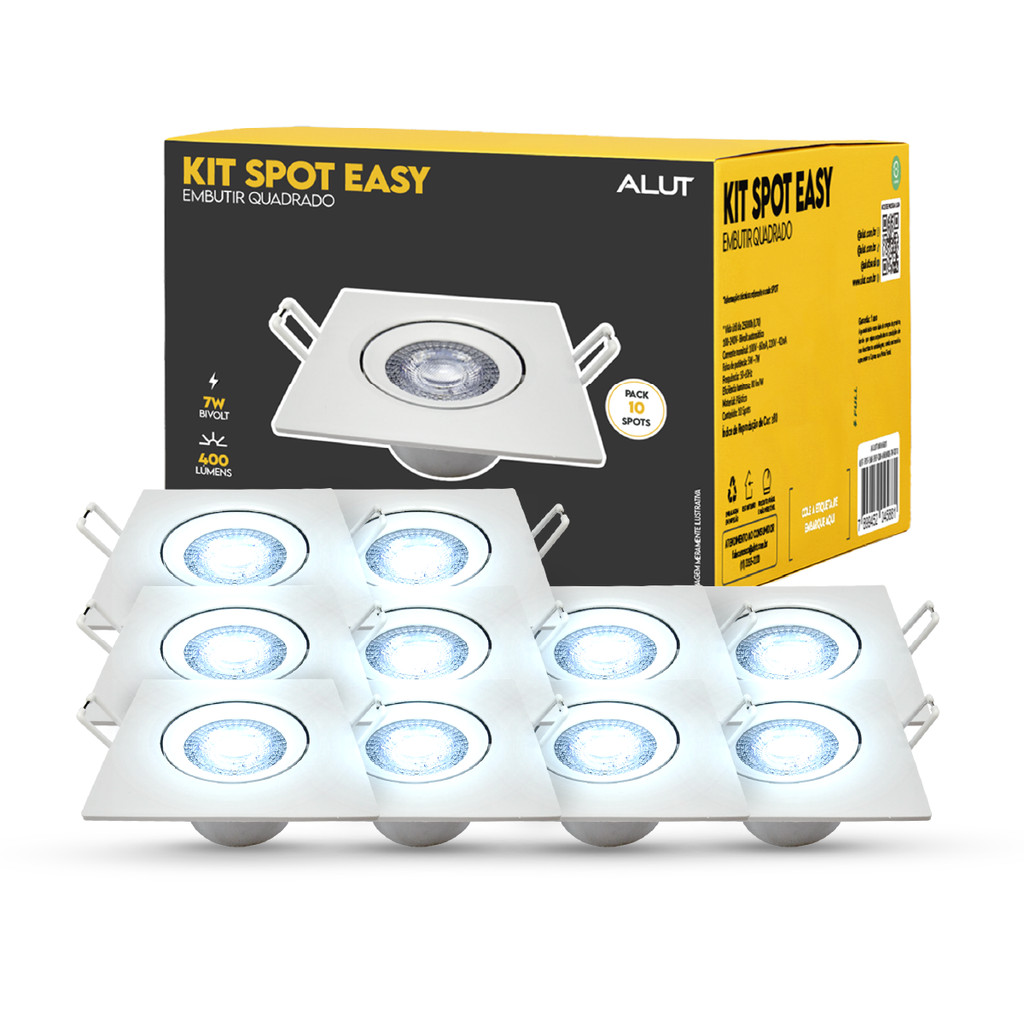 Kit 10 Spot Led Embutir 7w 3000k/4000k/6500k Branco Quente/Neutro/Frio Branco Alut By Avant