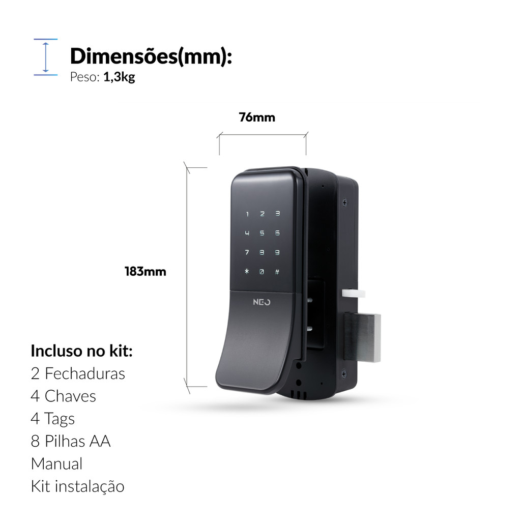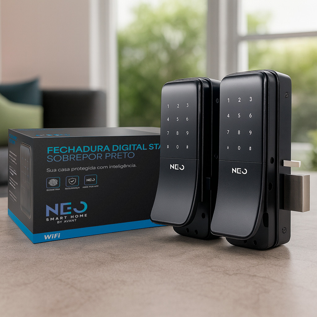 Fechadura inteligente Eletrônica Stark Digital Sobrepor Biometria Senha Tag Wi-fi Preto Neo Avant