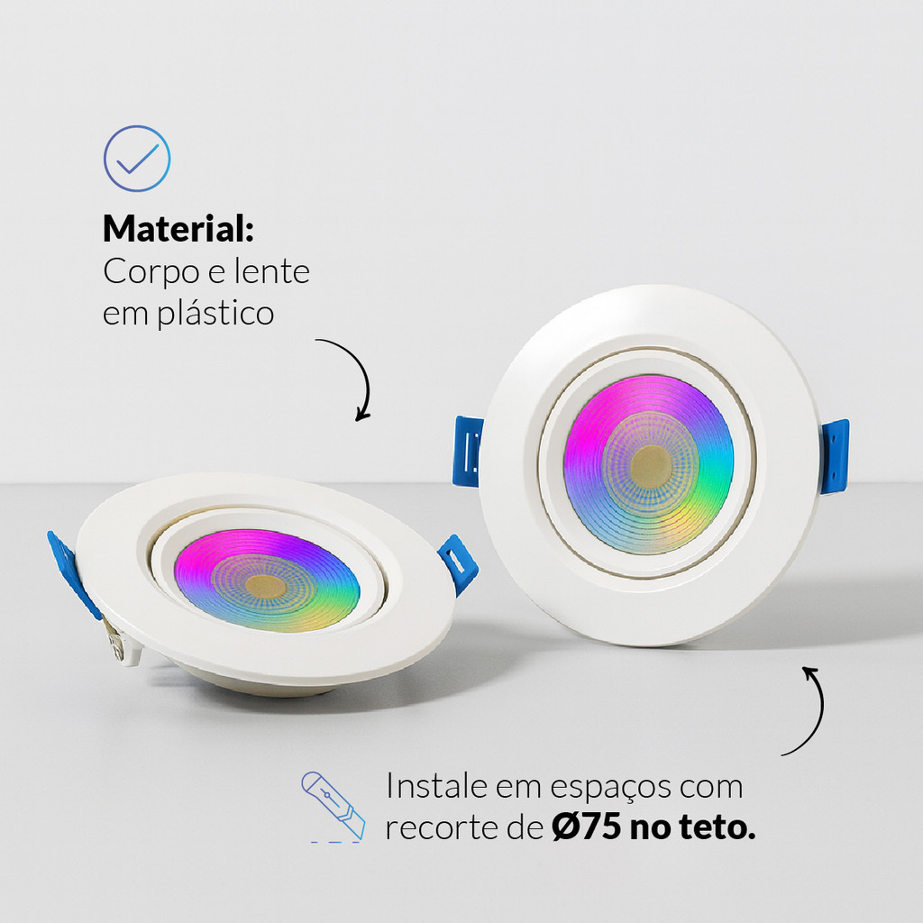 Kit Spot Led Smart Wi-fi 2.4 GHz Embutir 5w RGB 110v 220v Quadrado ou Redondo Branco Neo Avant