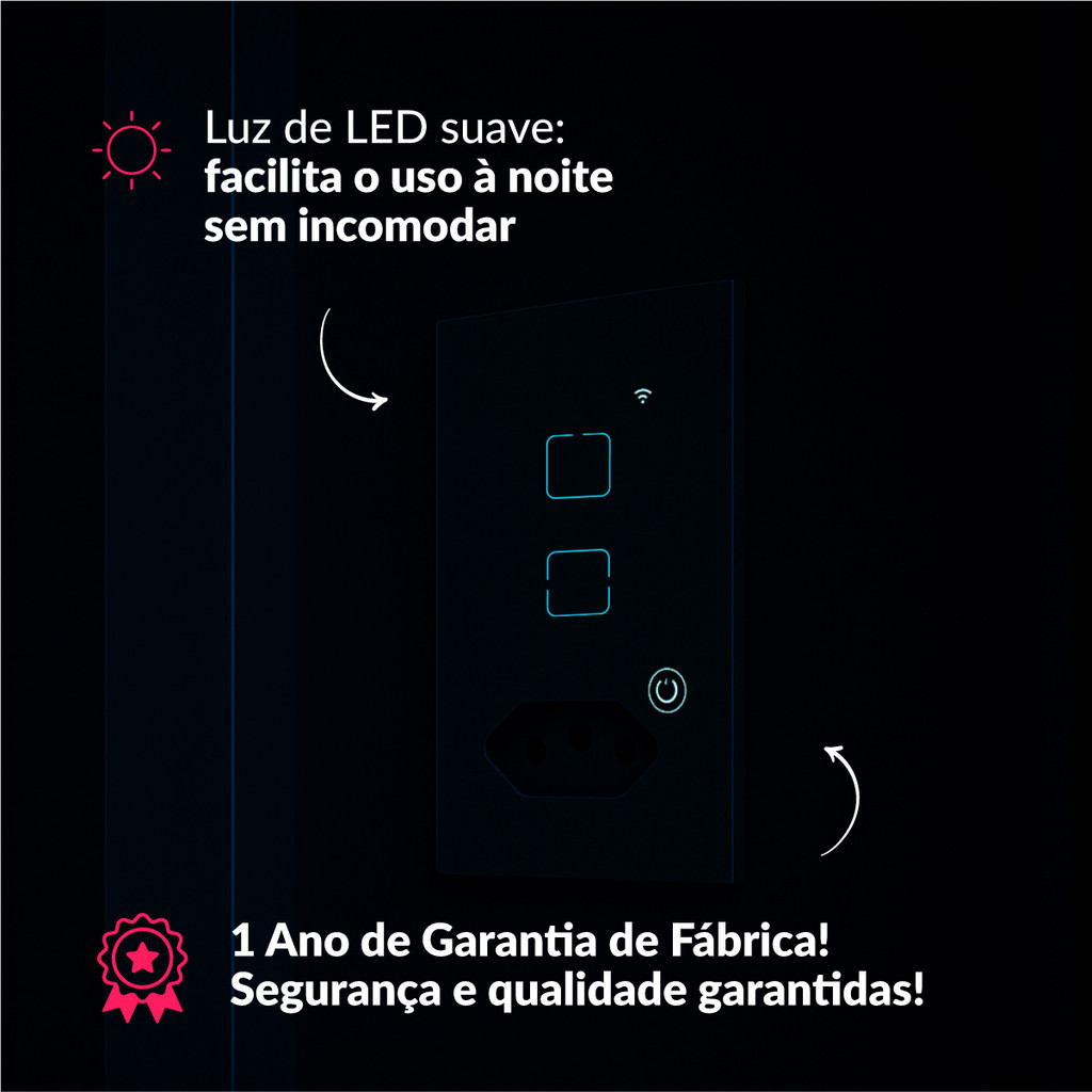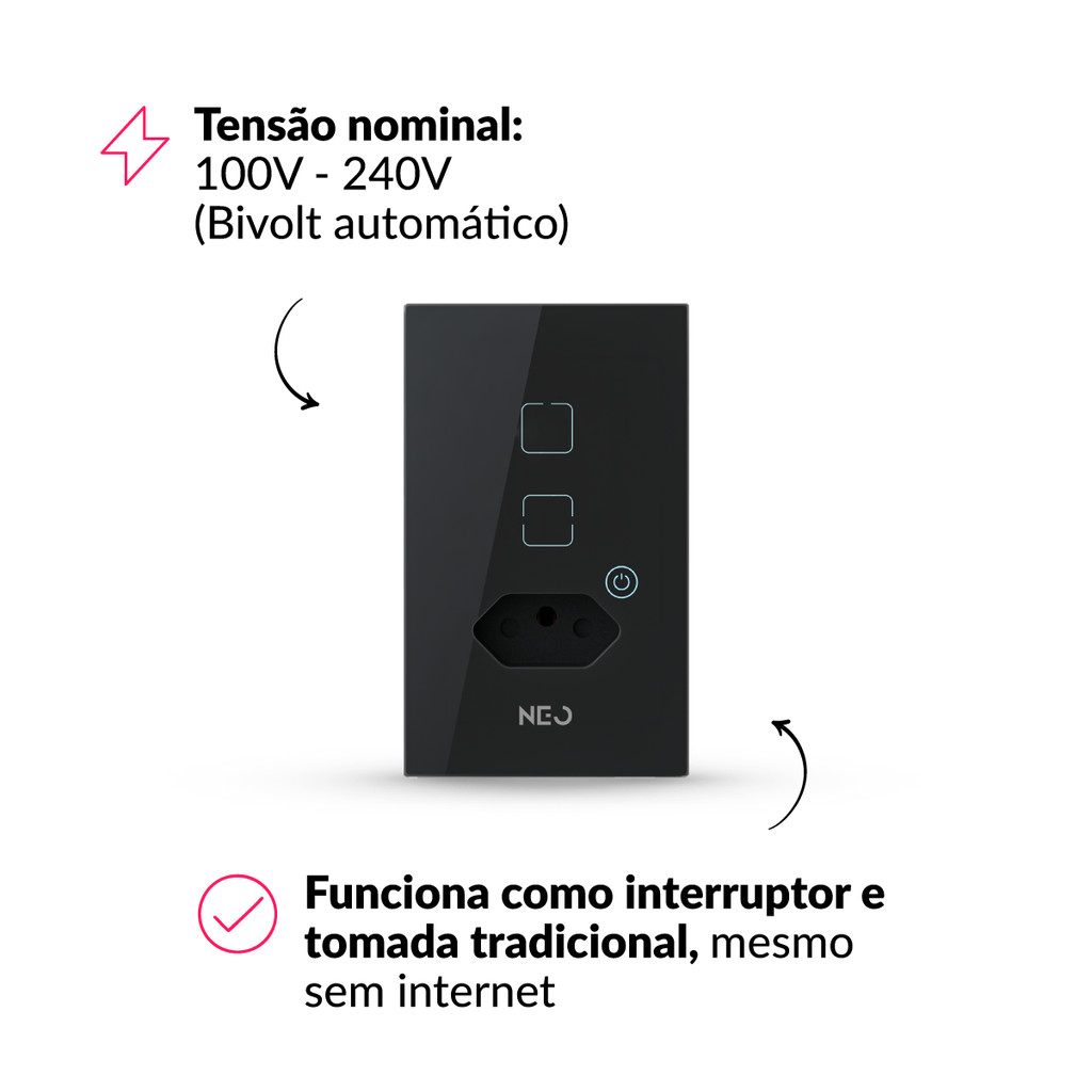 Interruptor com Tomada Smart Zigbee Alexa google 1 ou 2 Botões 4x2 Bivolt Preto ou Branco Neo Avant