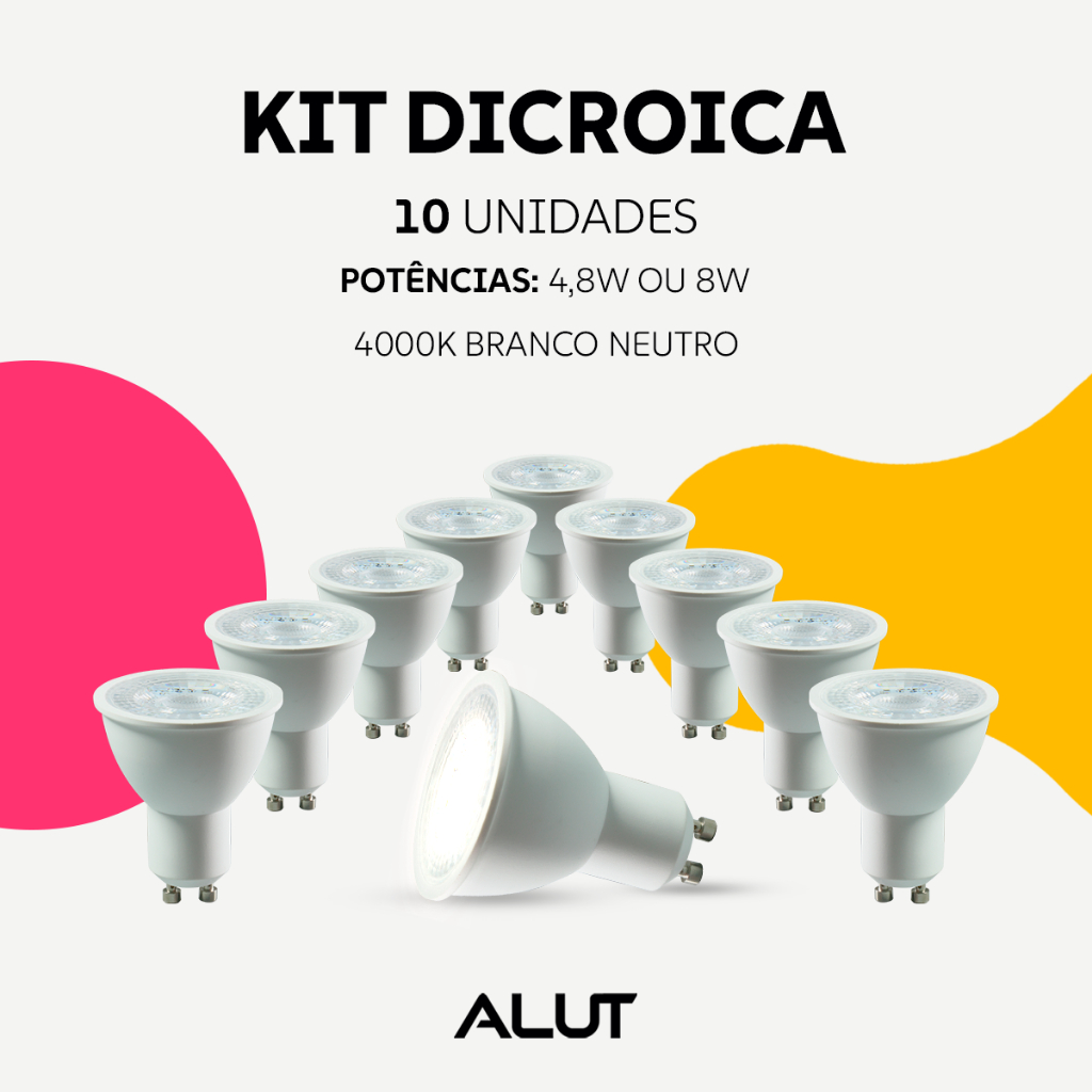 Kit 10 Lampada Led Dicróica MR16 4,8w ou 8w 2700, 3000k, 4000k ou 6500k GU10 110v/220v Branco ou Preto Alut By Avant