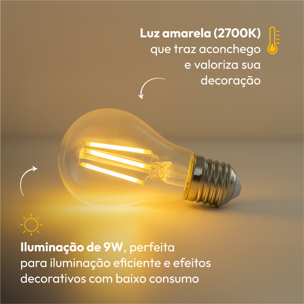 Lampada Led Pera Filamento Clear 9w/15w 2700k/4000k/6500k Branco Quente/Neutro/Frio E27 Bivolt Deluxe By Avant
