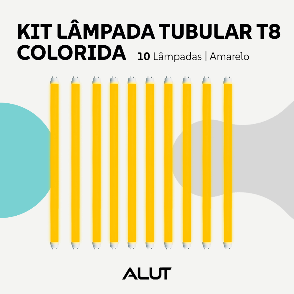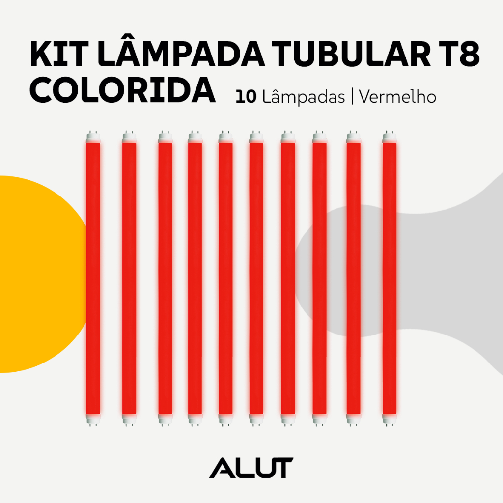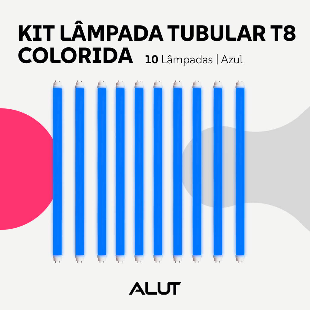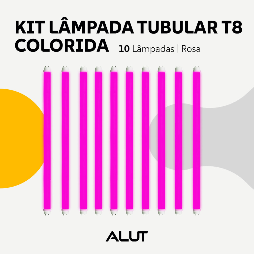 Kit 10 Lâmpadas T8 LED 18W Coloridas Amarela Azul Rosa Roxo UV Verde Vermelha G13 Alut By Avant
