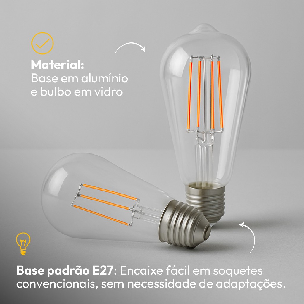 Lampada Led ST64 Filamento Clear 9w/15w 2700k/4000k/6500k Branco Quente/Neutro/Frio E27 Bivolt Deluxe By Avant