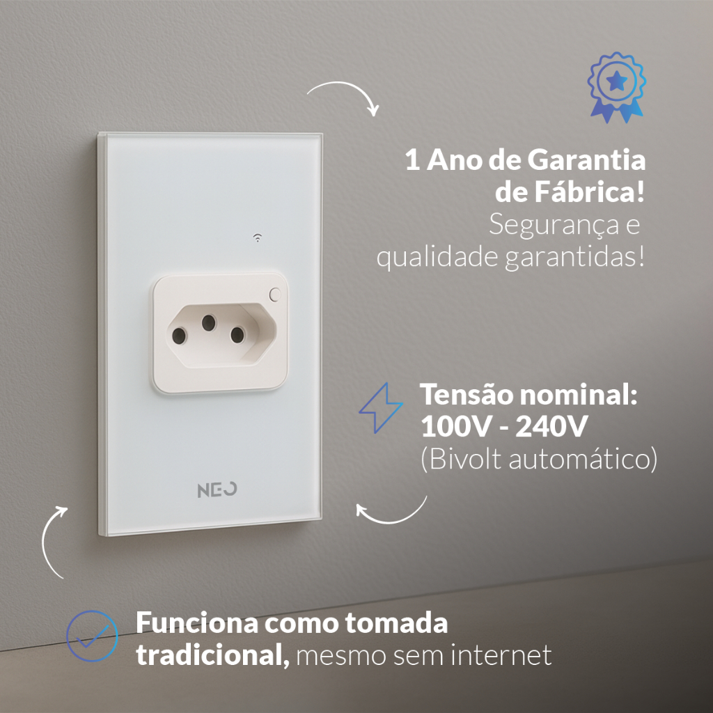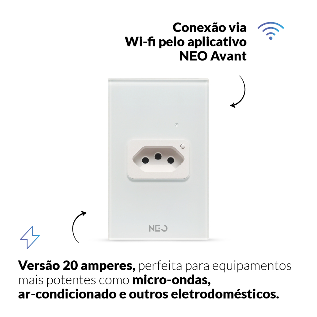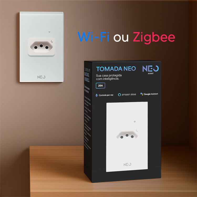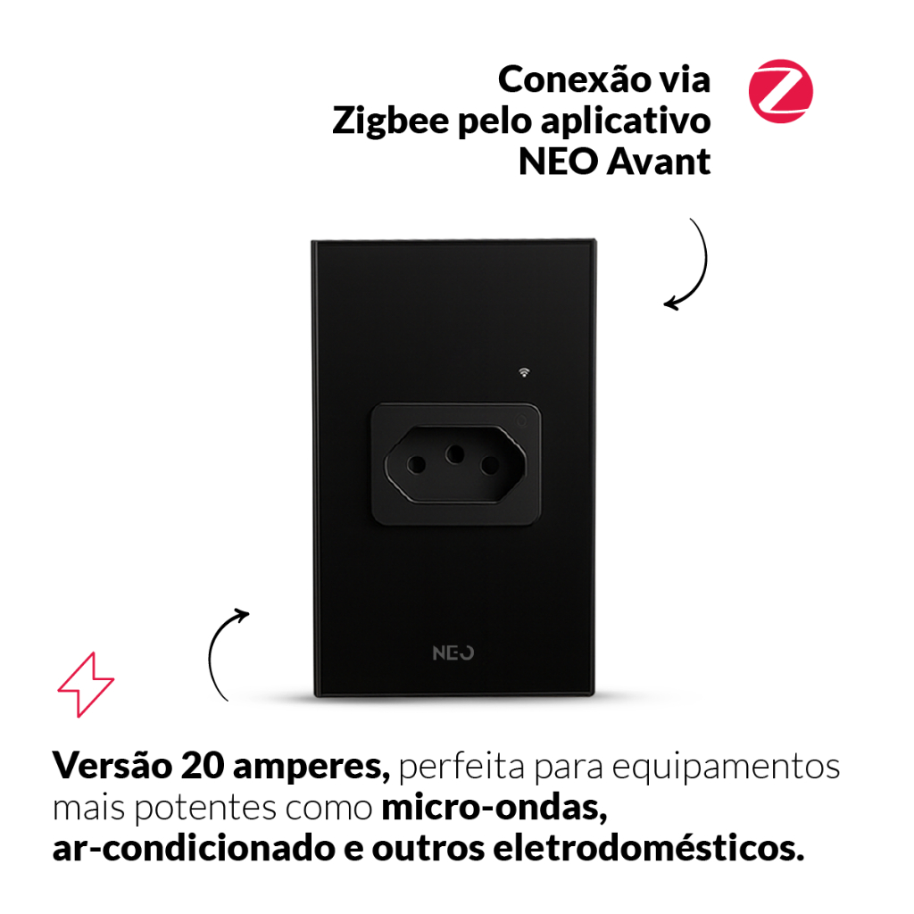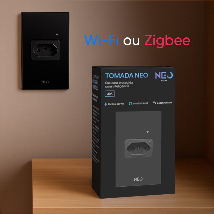 Tomada Inteligente Smart Wi-fi 2.4 GHz ou Zigbee 20A 110v/220v Bivolt Branco ou Preto Avant Neo