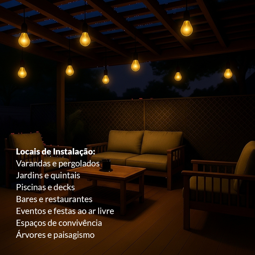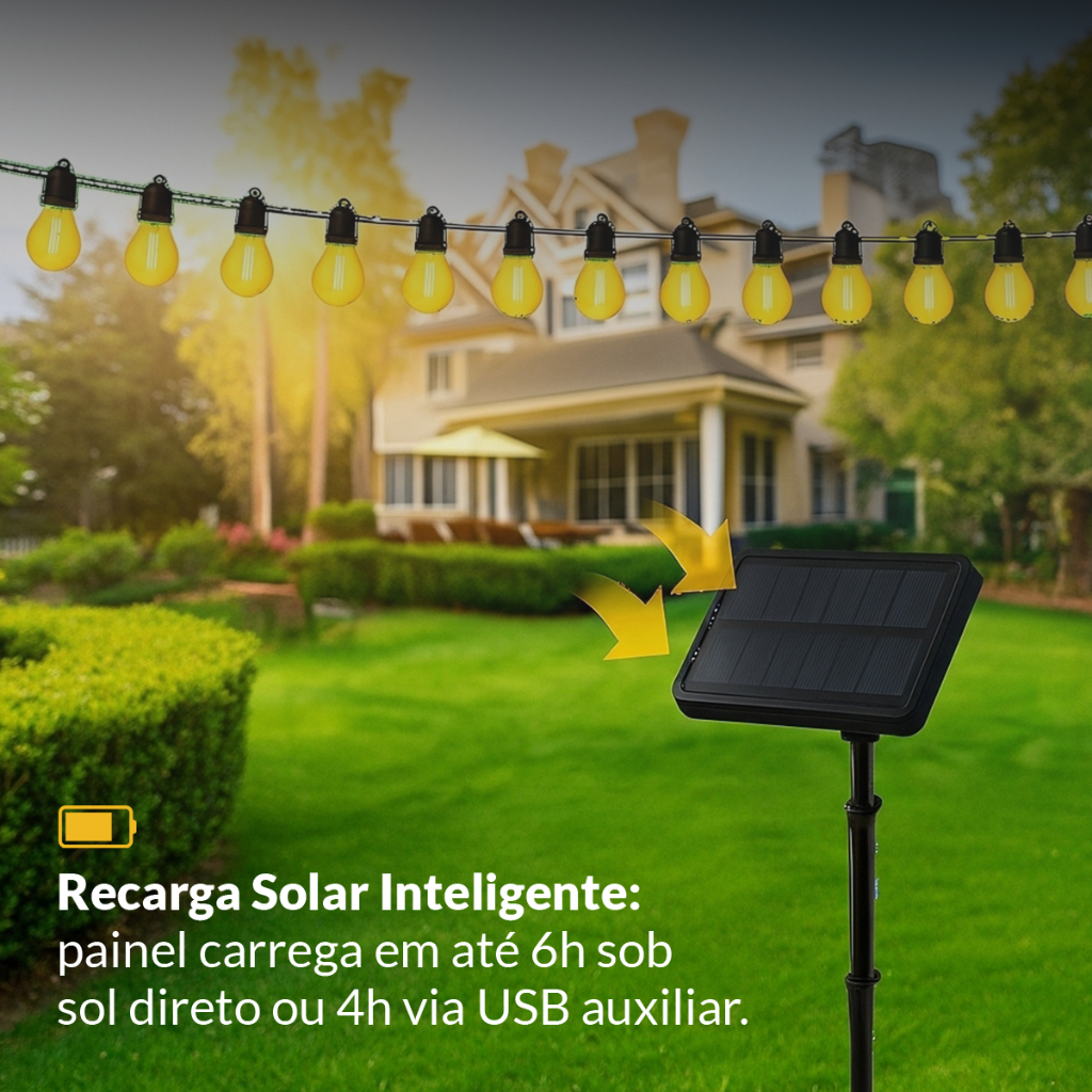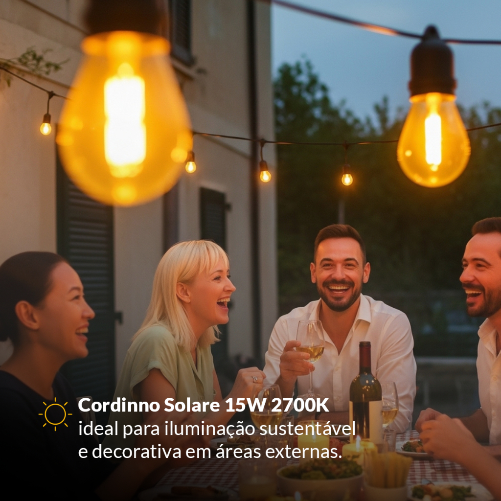 Varal de Luzes solar recarregável 15 Metros com 30 Lampadas 15w 2700k Branco Quente Cod: ALUT001650 Alut By Avant