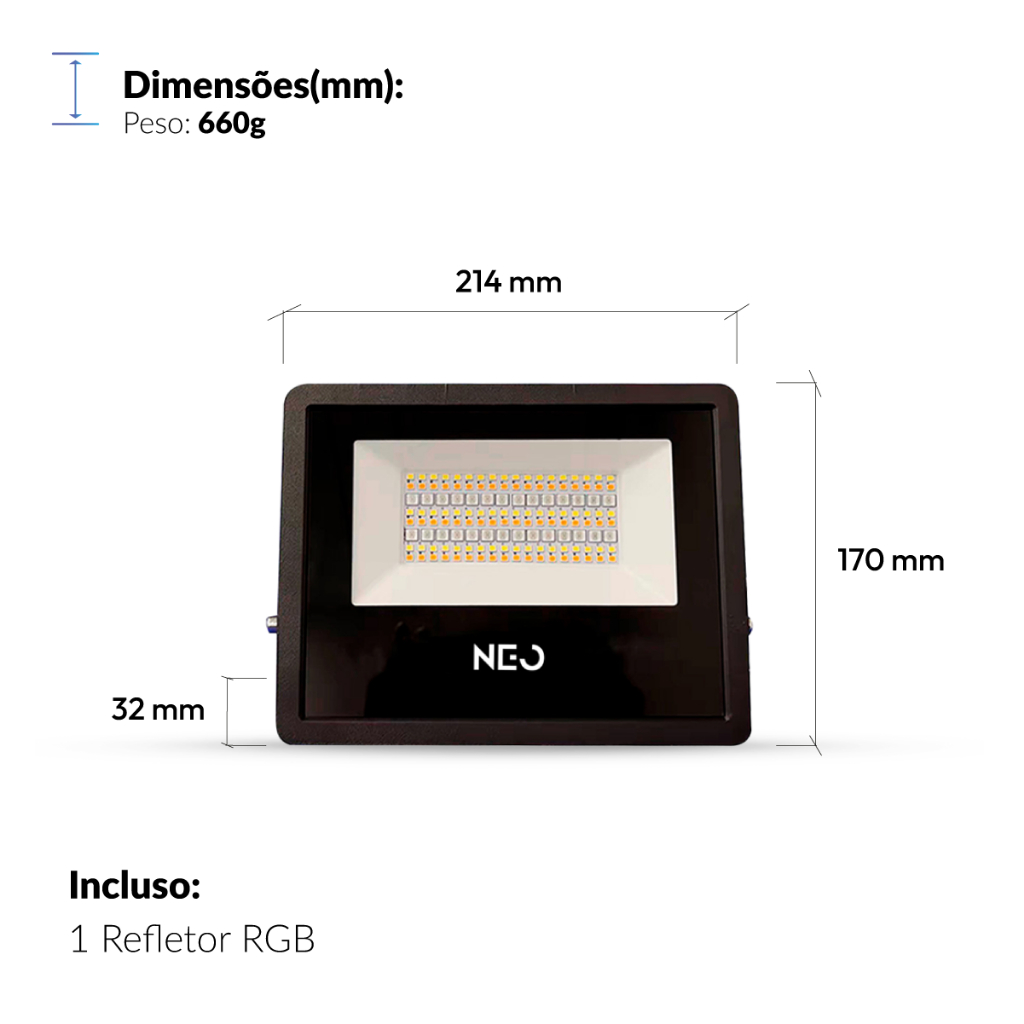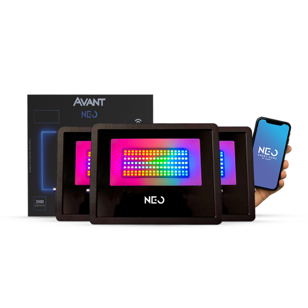 Kit 1, 2, 3 ou 4 Refletor Led Smart Inteligente Wi Fi 50w RGB Colorido Bivolt Preto Neo Avant