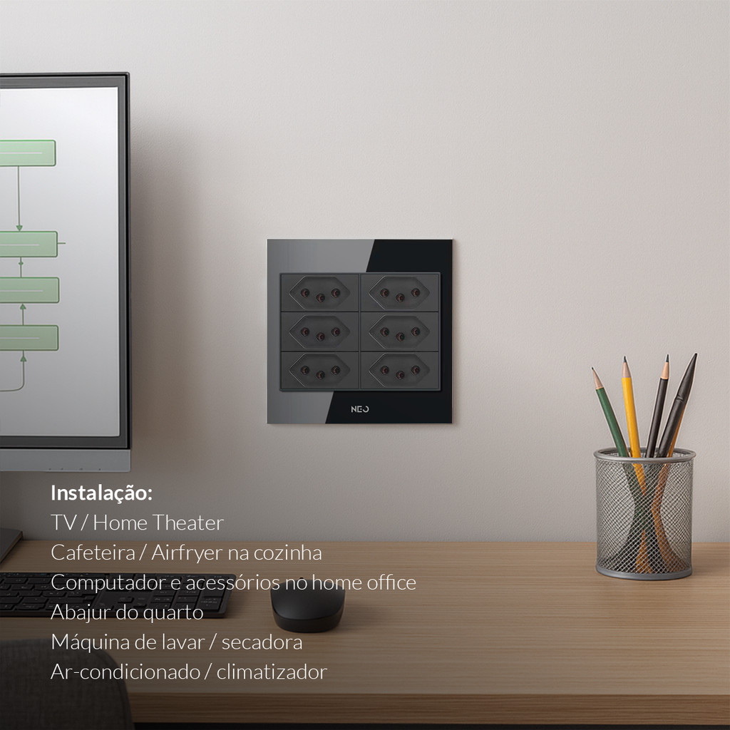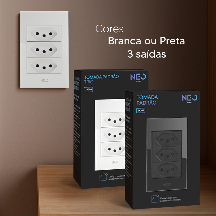 Tomada Flex 10A e 20A com 1, 3 ou 6 Saídas 110v/220v Bivolt Branco ou Preto Avant Neo