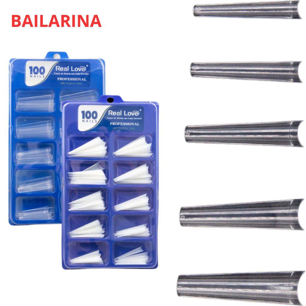 Unha Tips Curvatura C Transparente para Alongamento - Real Love