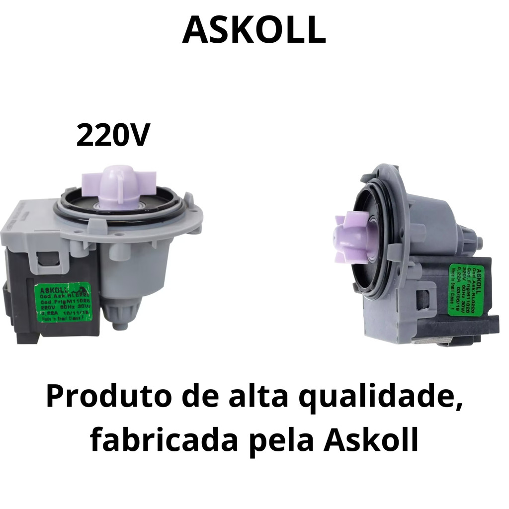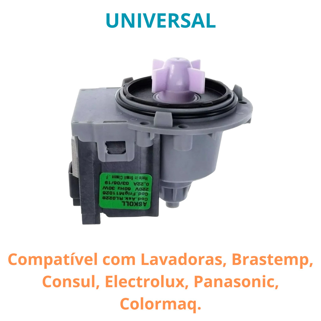 BOMBA DE DRENAGEM COMPATÍVEL BRASTEMP ELECTROLUX 220V ASKOLL UNIVERSAL BWK11 BWK12 BWG11 CWL10 LTE12