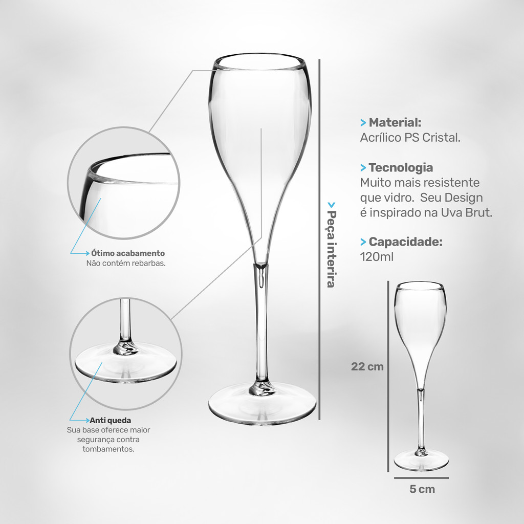 Taças de Acrílco PREMIUM 5 Peças RESISTENTE 120ml ELEGANTE Taça de Champanhe Acrílico Taça Espumante