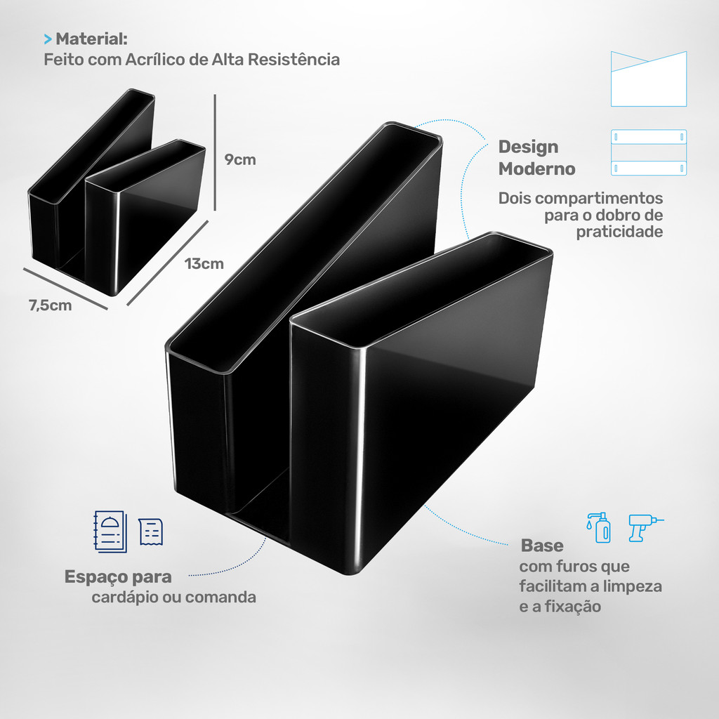 Porta Guardanapo Duplo Preto 6pcs Resistente Restaurantes Bares