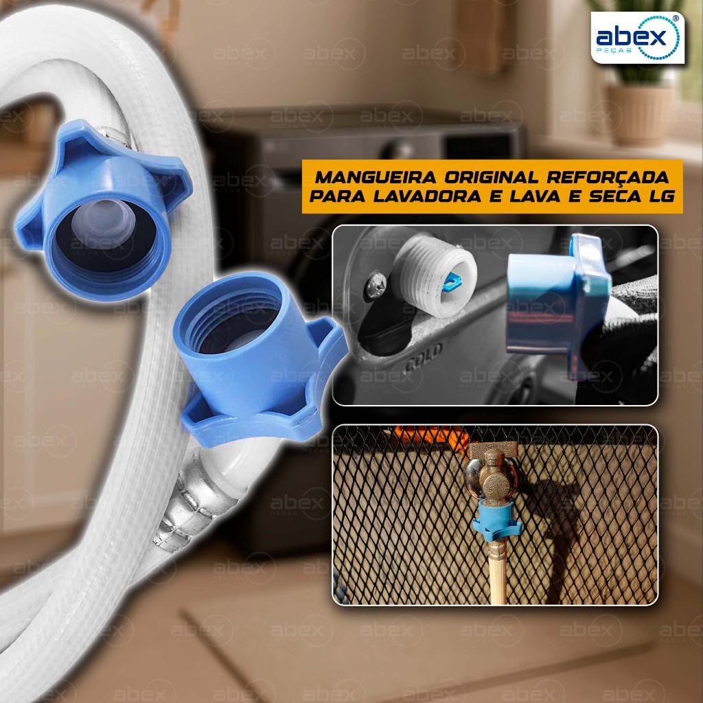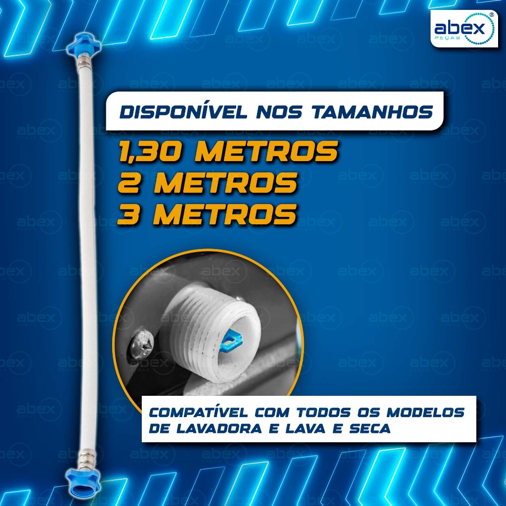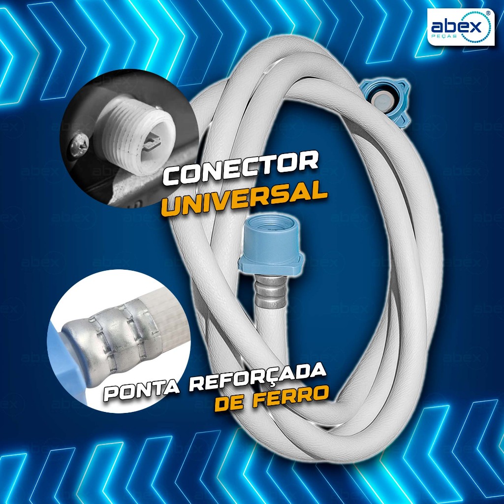 Mangueira Entrada Água Máquina de Lavar Lavadora Brastemp, Eletrolux, Consul, LG 2 Metros Reforçada