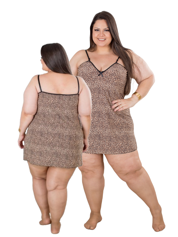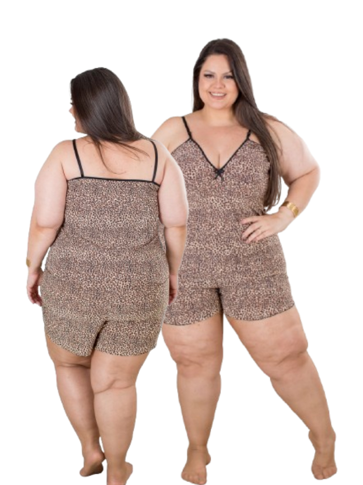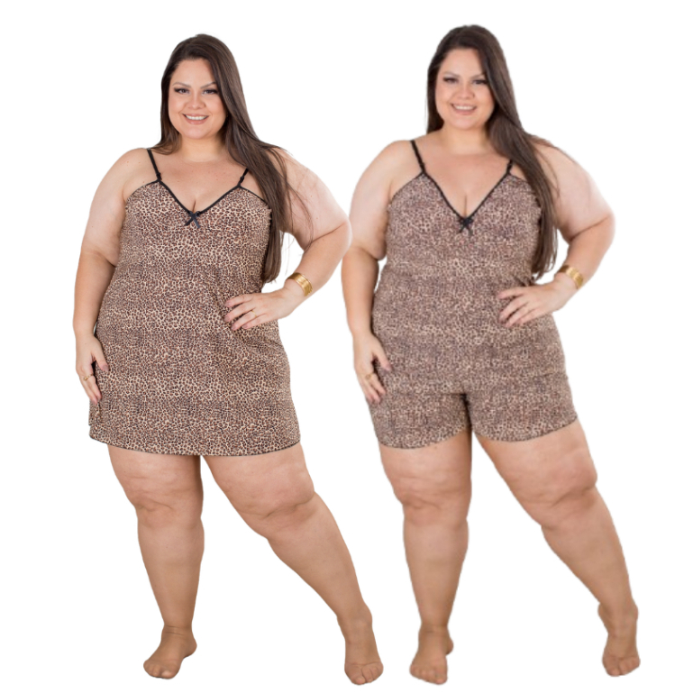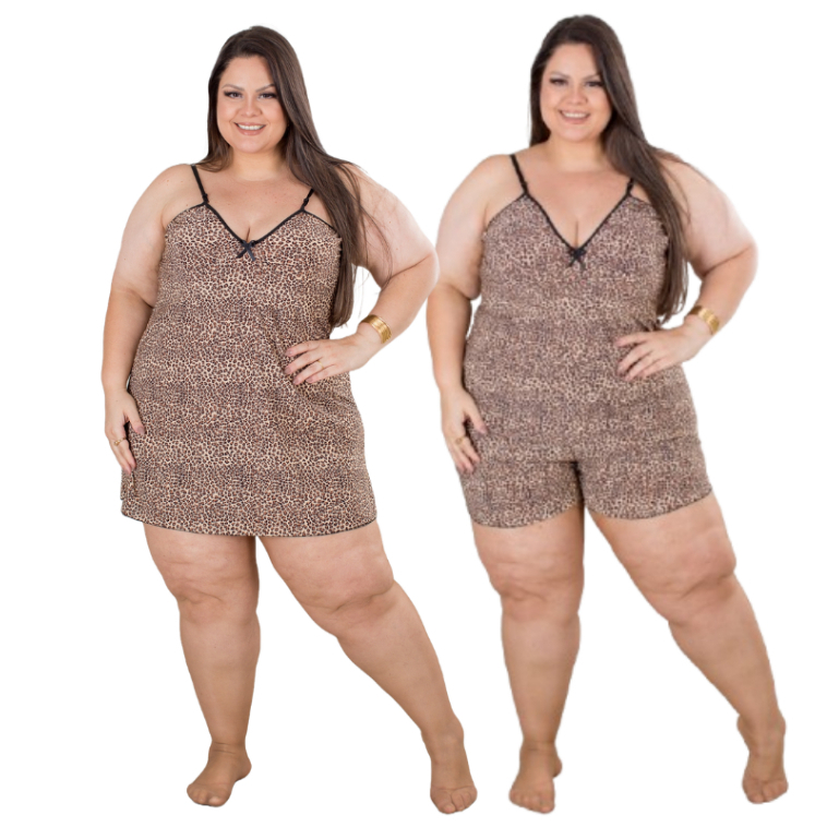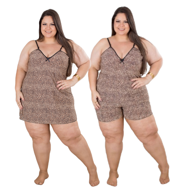 Conjunto Plus Size Baby Doll e Camisola Plus Size Feminino Animal Print Pijama