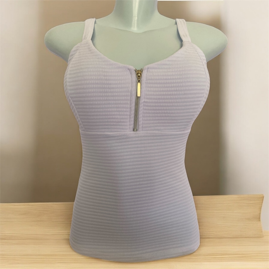Blusa Feminina com Bojo e Zíper Frontal Alça Grossa