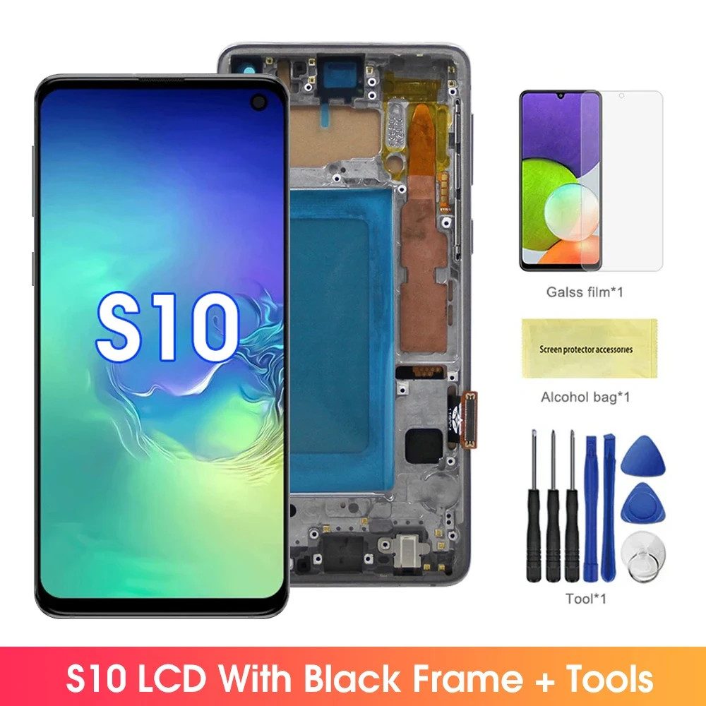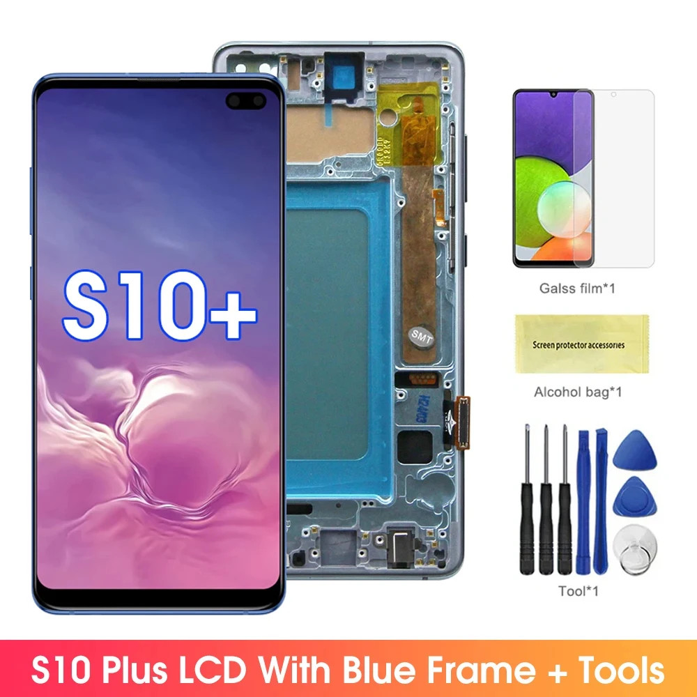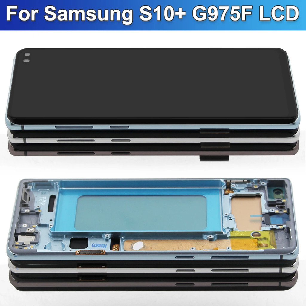 Tela De Toque Digital Com Moldura Para Samsung Galaxy S10 Plus S10 + G975 G975F Lcd Display Montagem