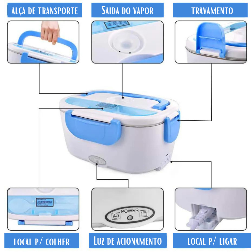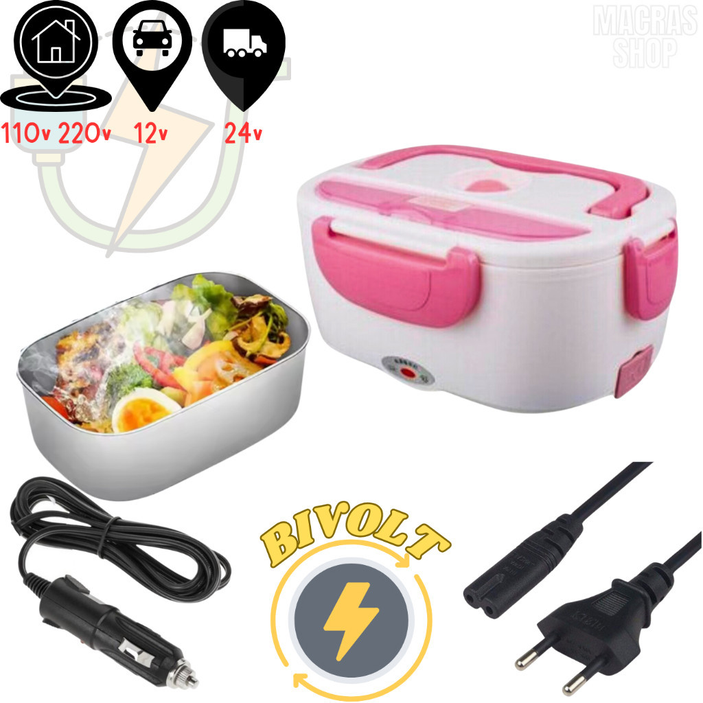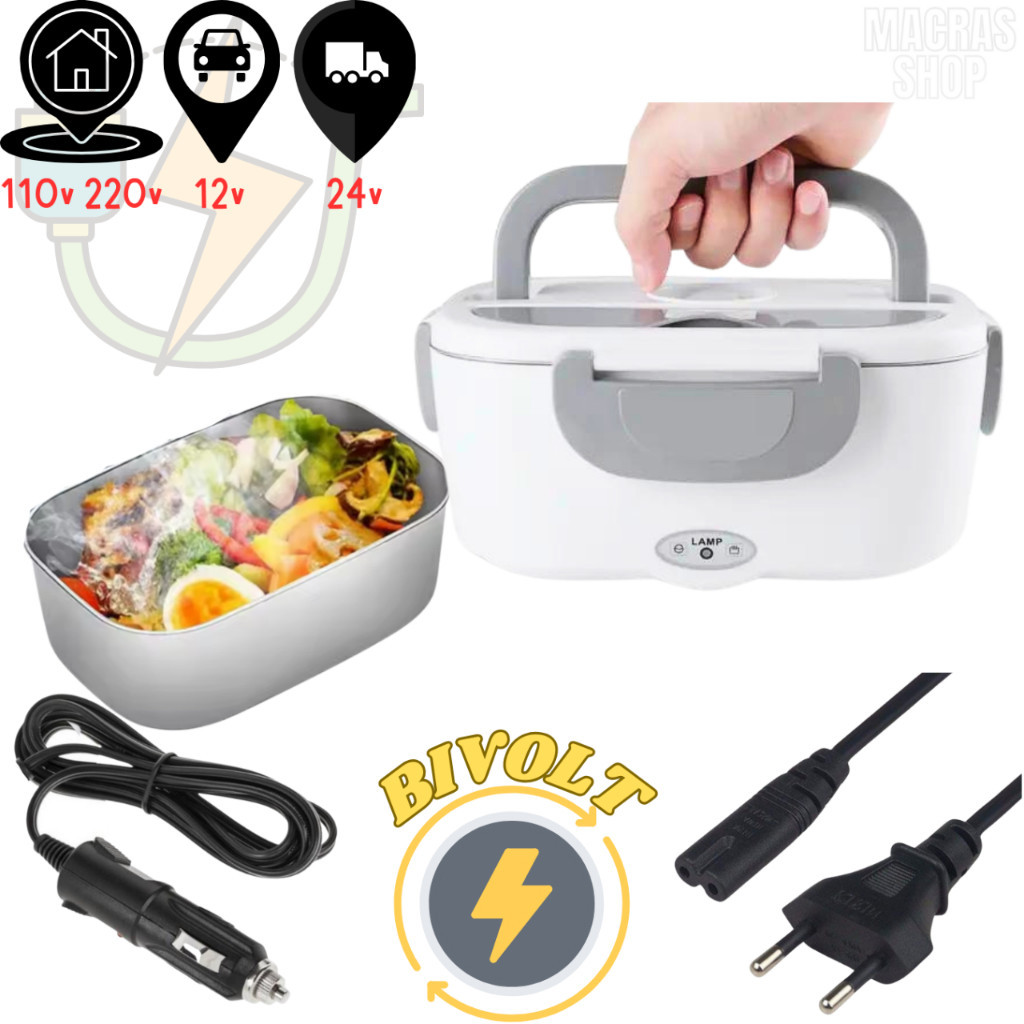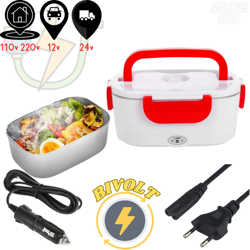 Marmita Elétrica Veicular Bivolt P/ Carro Casa Taxi Uber Caminhão 12V 24V 110V 220V C/ 2 Cabos