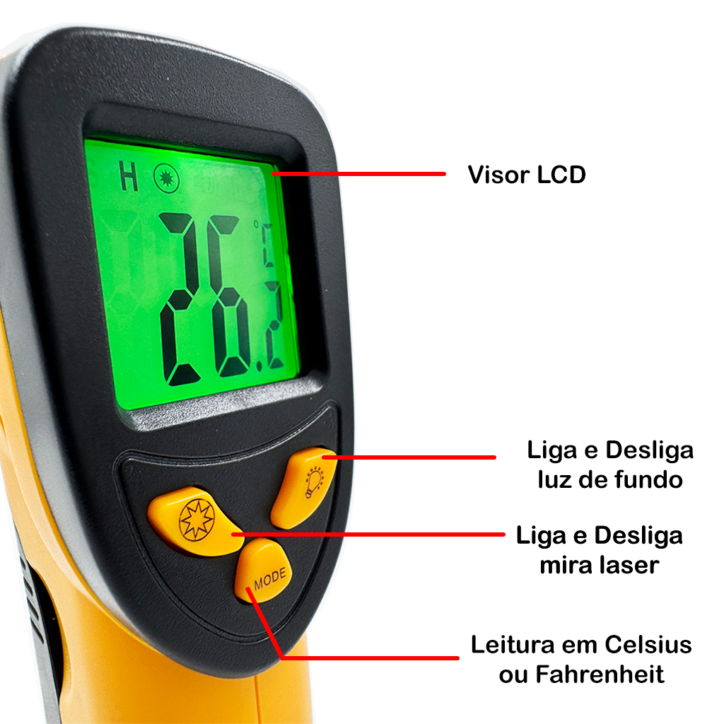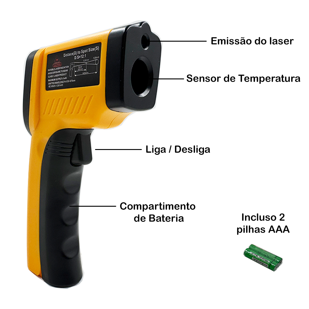Pistola Termômetro Laser Infravermelho Digital Profissional GM 550° Industrial Portátil com pilhas