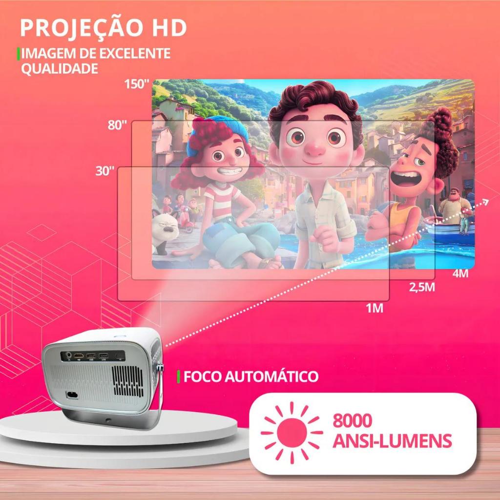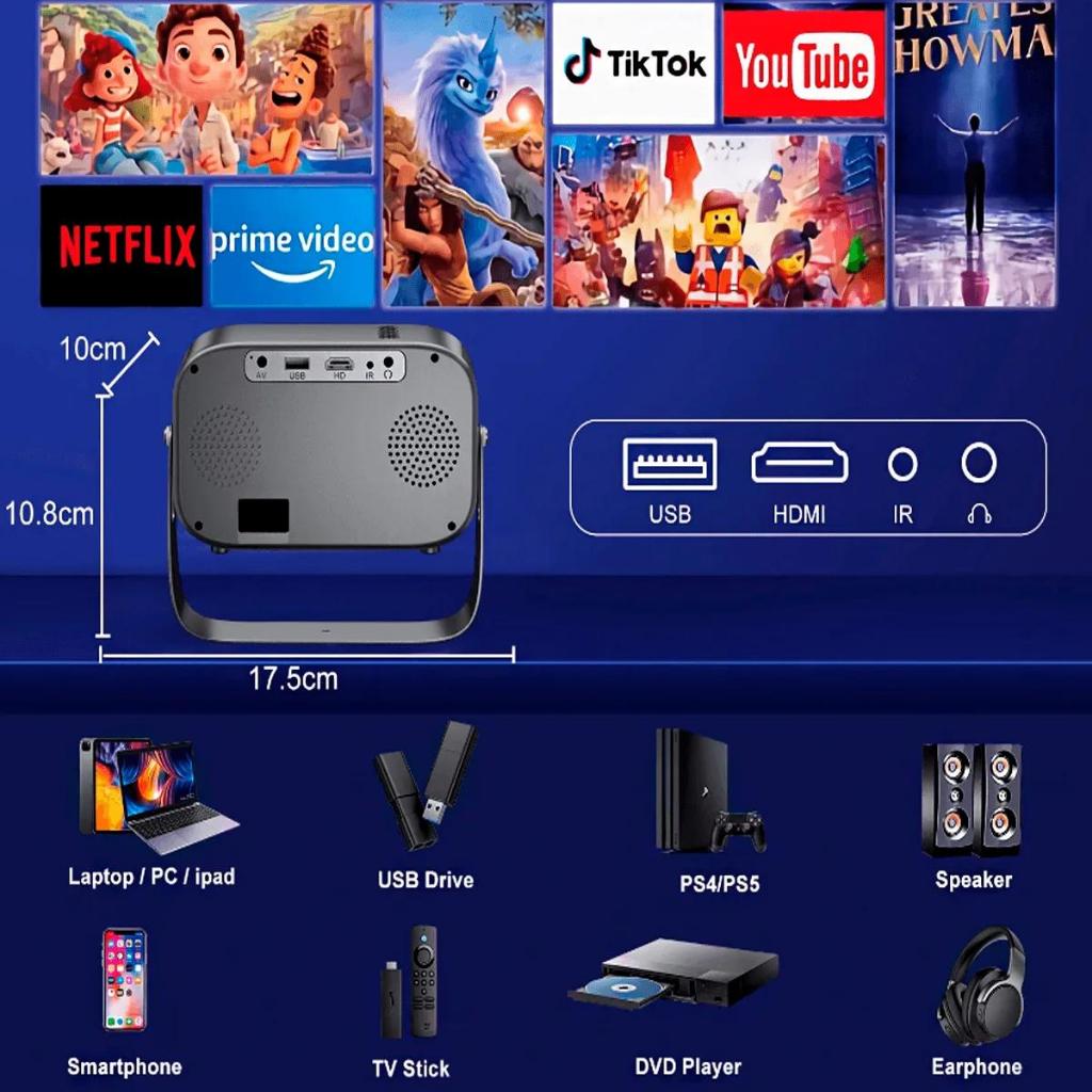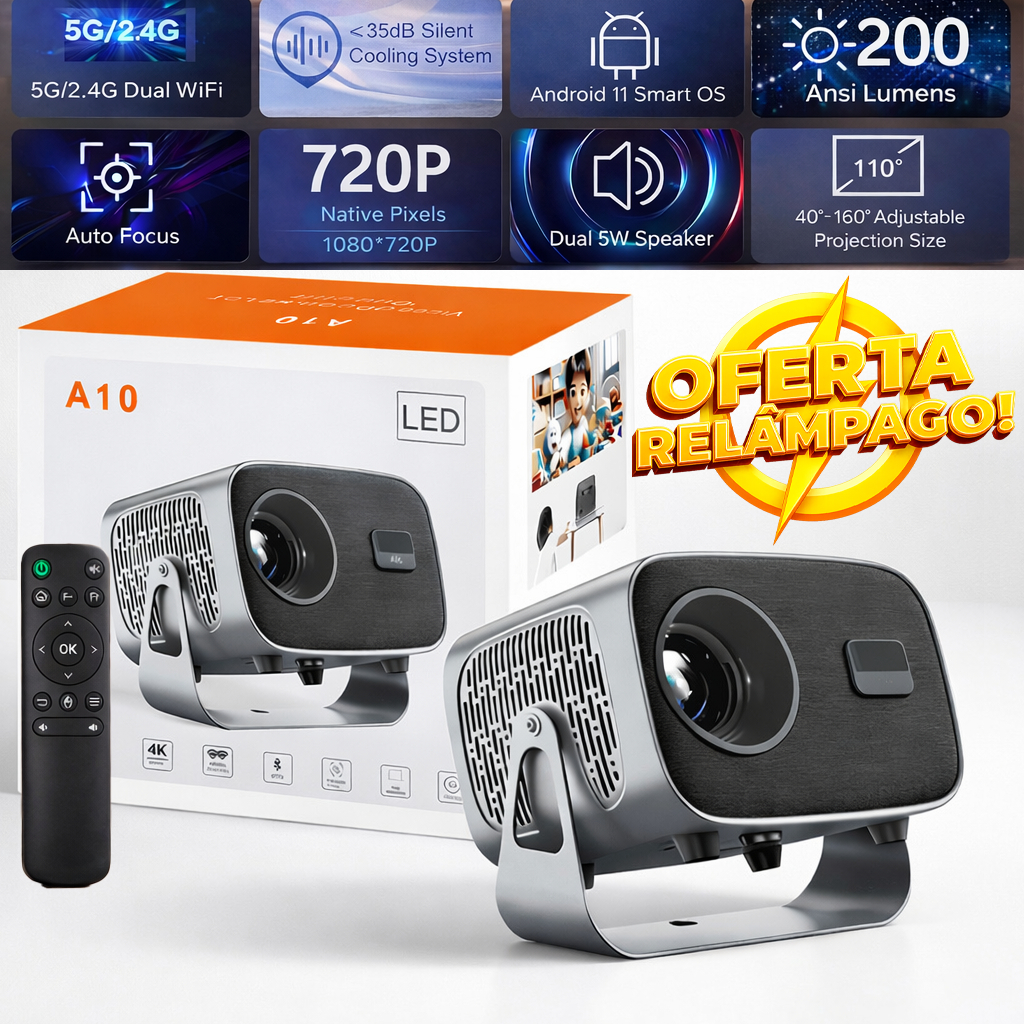 Projetor A10 4K Android 11 Cinema em Casa - Netflix e Youtube Nativo - Bluetooth 5.0 Dual Band Wi-Fi 6