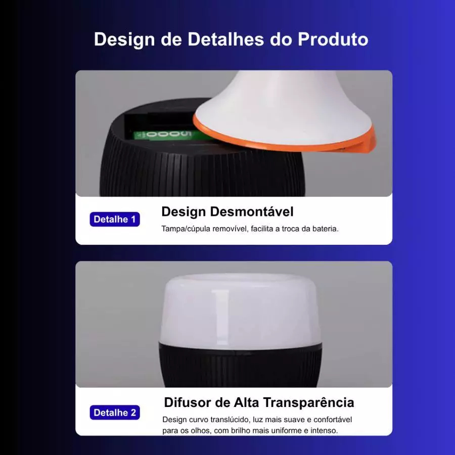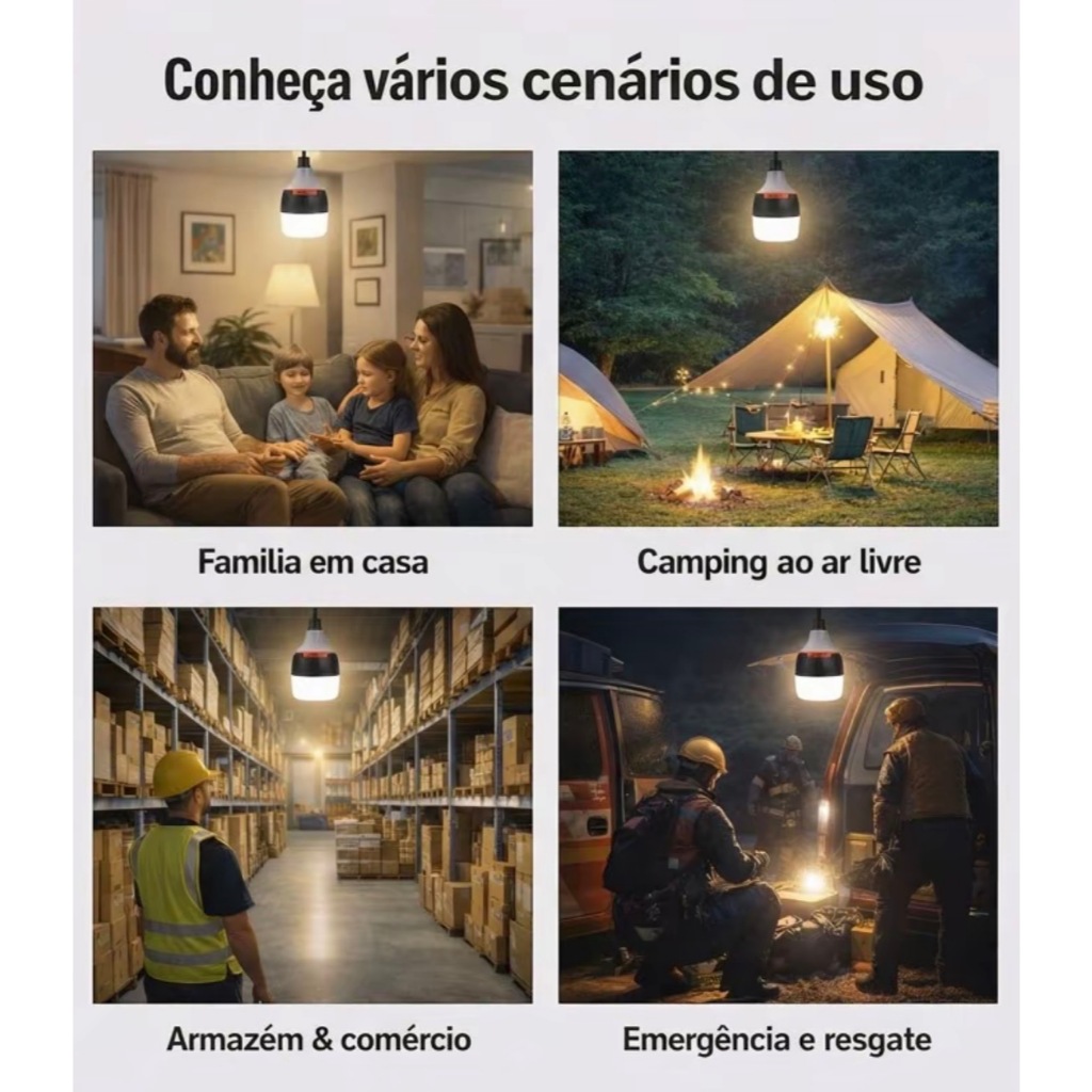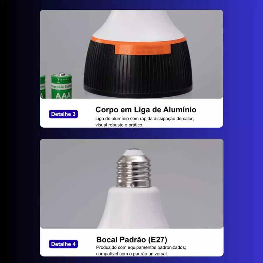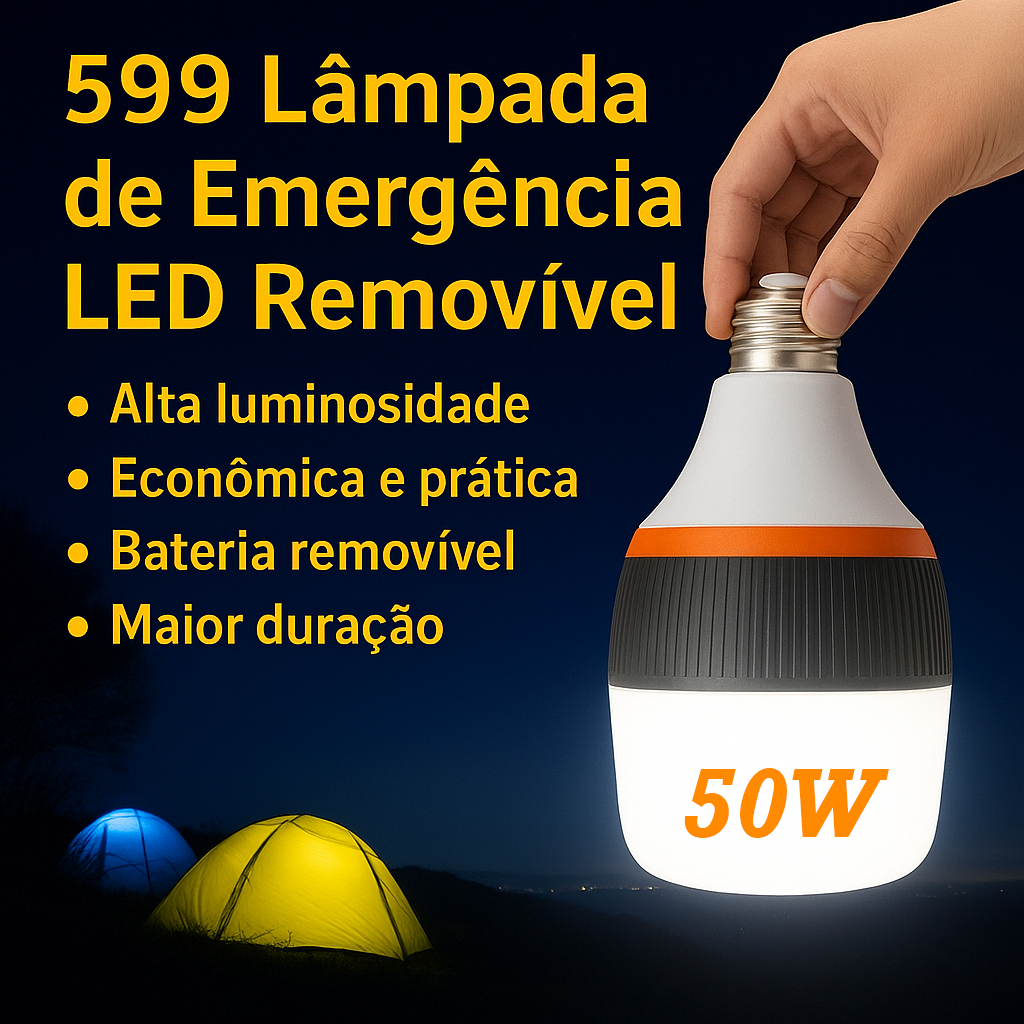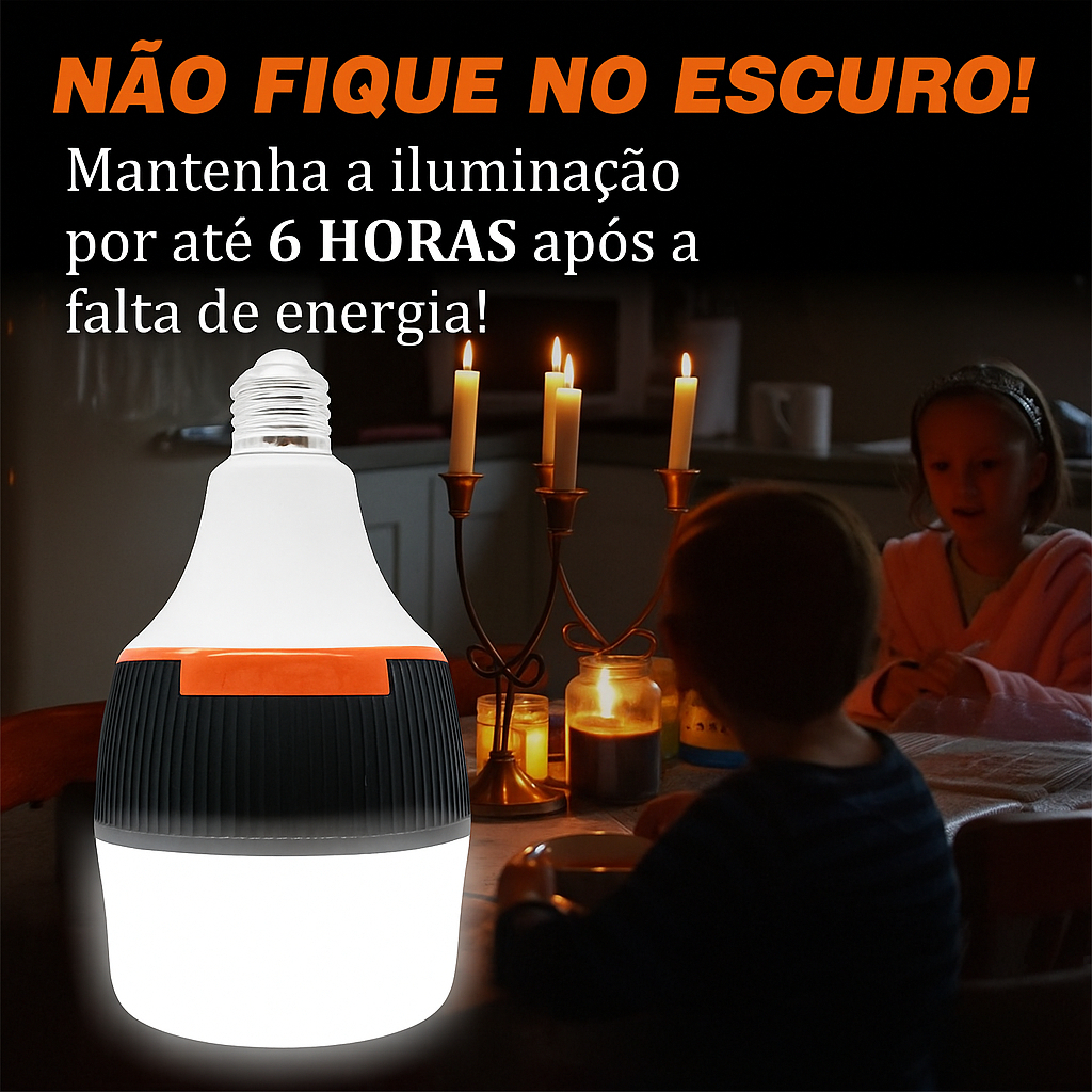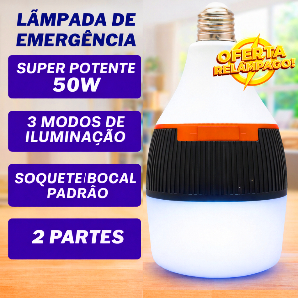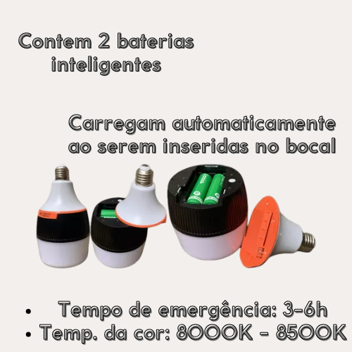 Lâmpada De Emergência 50w 6h Ligada Após Faltar Energia Led Bivolt Pilhas incluídas Recarregável