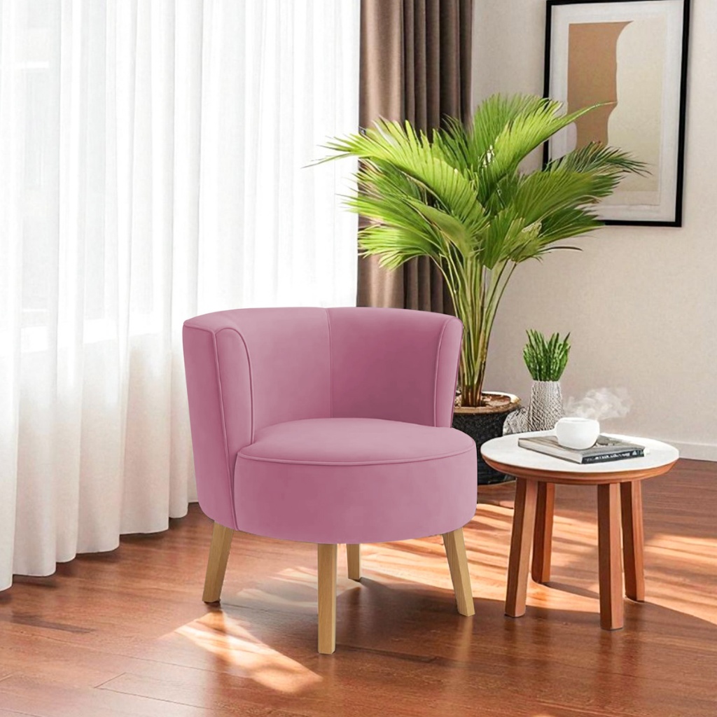 Poltrona organica bella pes de madeira em suede rosa sala salão recepção manicure
