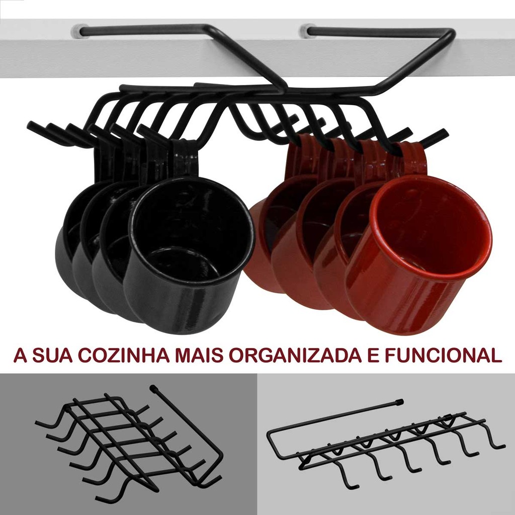 Suporte Suspenso Para 12 Xícaras Preto