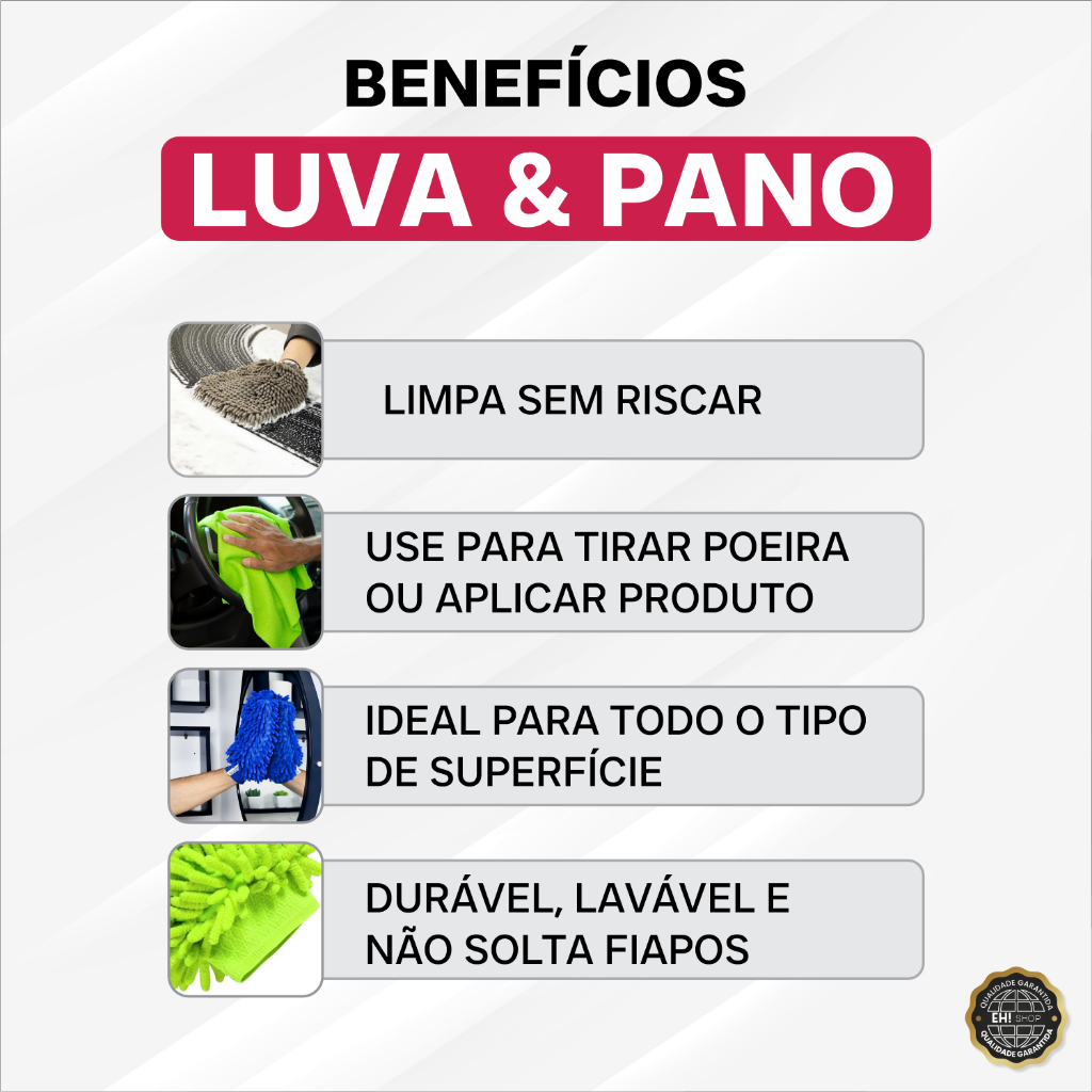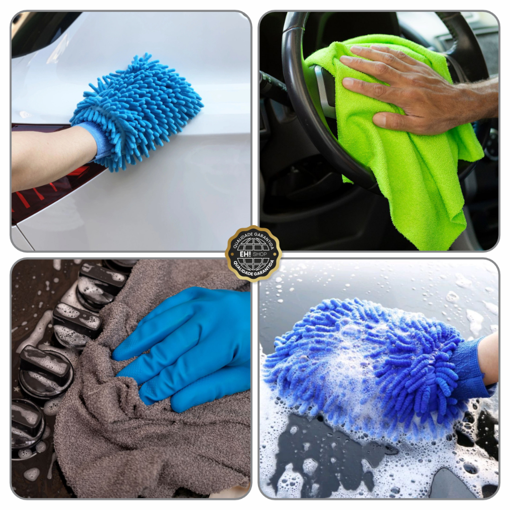 Luva +5 pano de Microfibra Kit Lavagem automotiva Lavar Carro Moto Caminhão Multiuso Luva Microfibra
