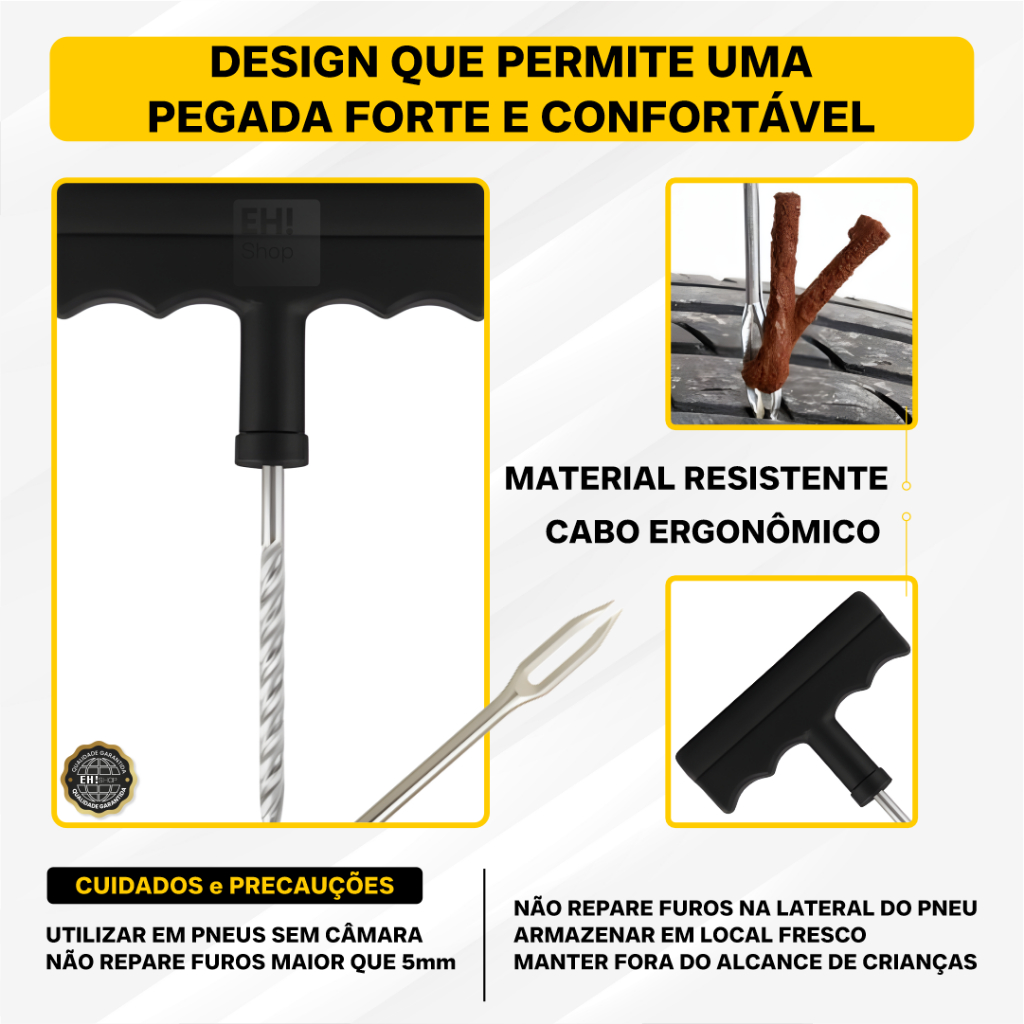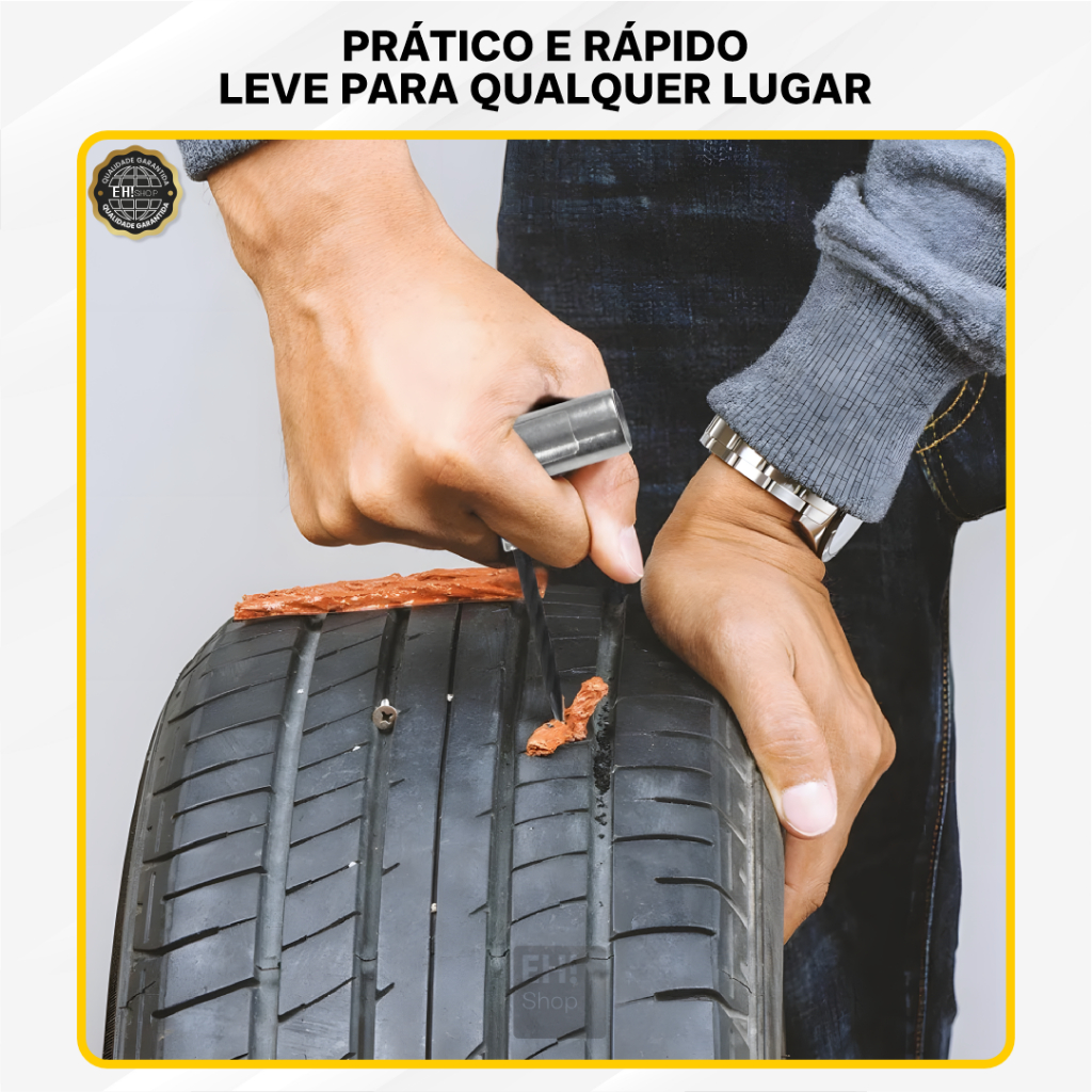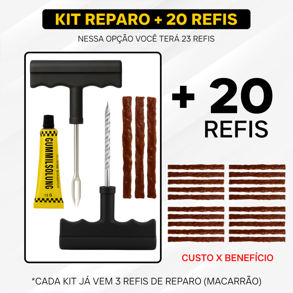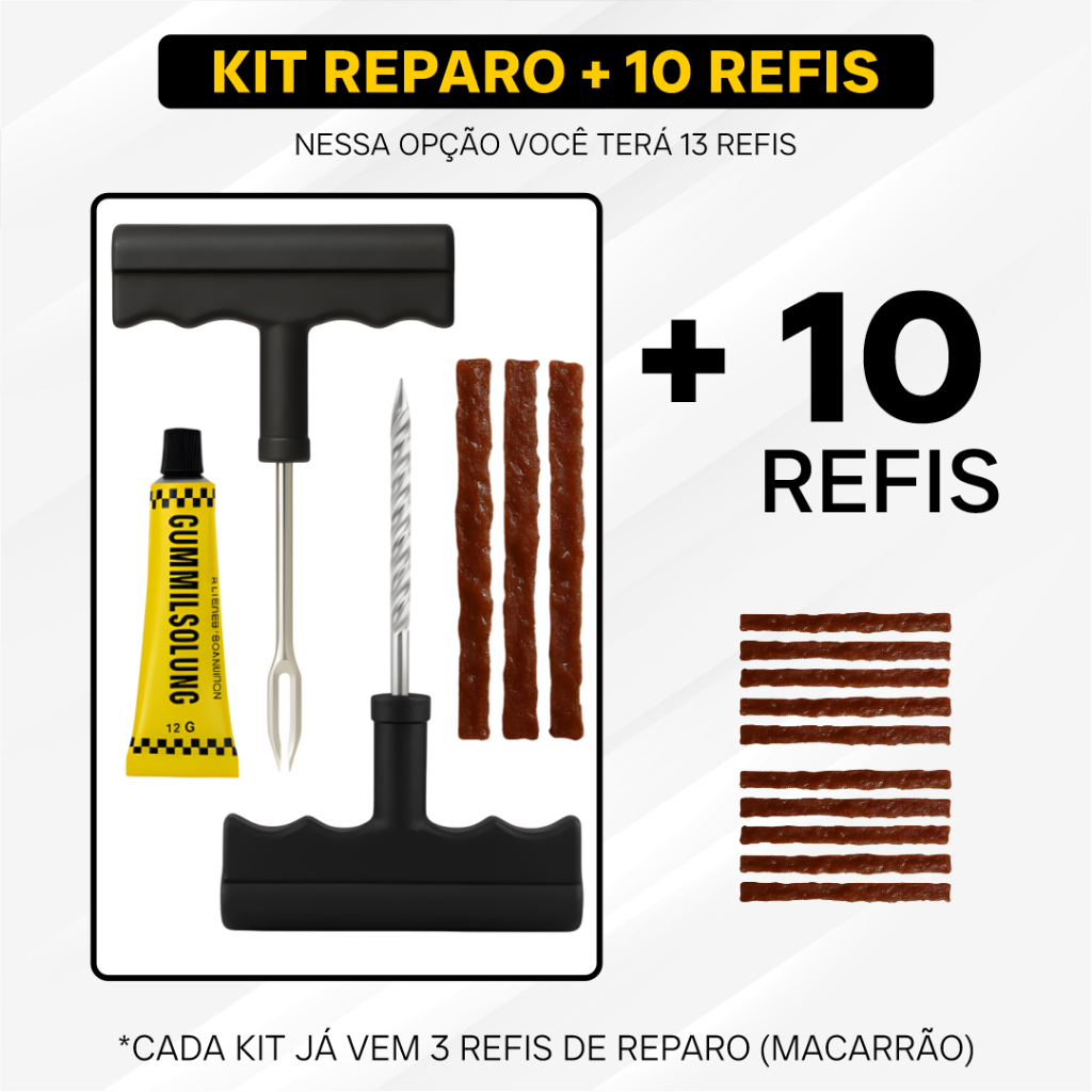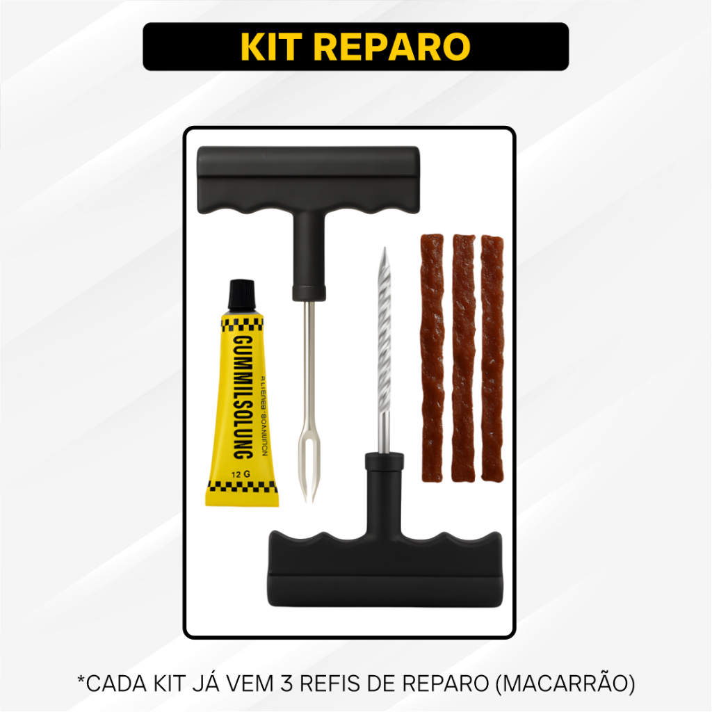 Kit Reparo Pneu Sem Camara Carro e Moto + 23, 13 ou 3 Refil Selante Macarrão Remendo Bicicleta