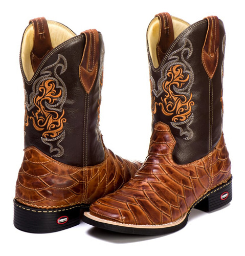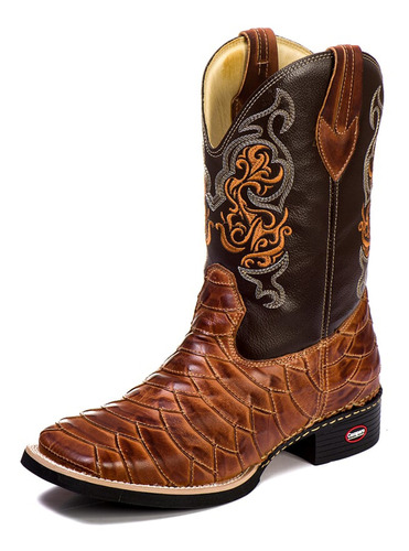 Bota Texana Masculina Rodeio Escamada Couro Bico Quadrado