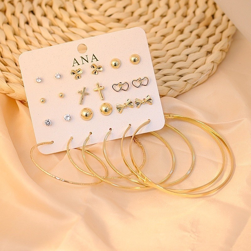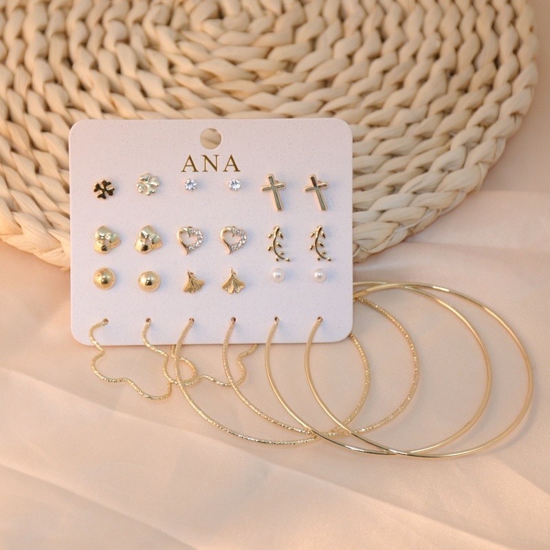 ANA1108 Kit 12 pares de brincos com argolas prata e dourada-48A
