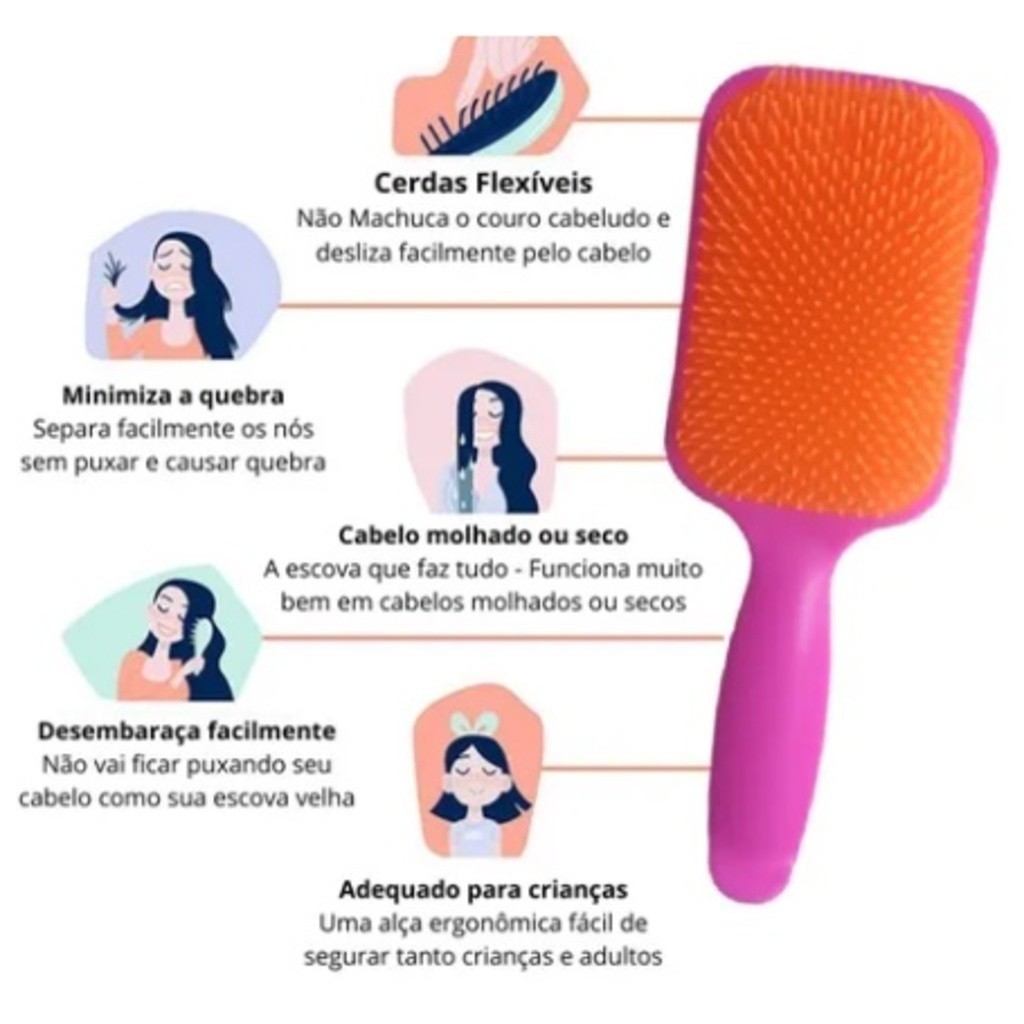 Escova De Cabelo Raquete Desembaraçadora Flex Hair Não Danifica Fios cor neon--GUI ANA