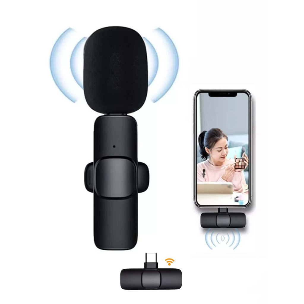 Microfone de Lapela Sem Fio K9 Vlog Compatível Tipo C e iPhone