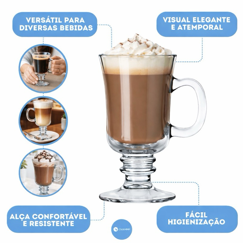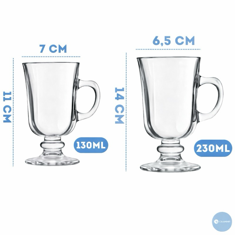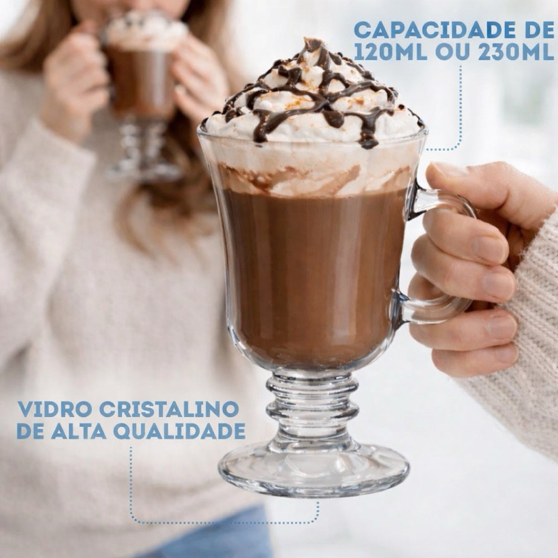 Jogo 3/6un Canecas Real Taças 230ml/120ml Para Capuccino Café Vidro Resistente Cristalino Luxo