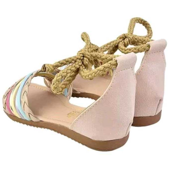 Sandalia Infantil de Tiras Colorida Trancinha com detalhe de amarrar