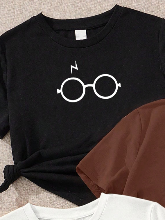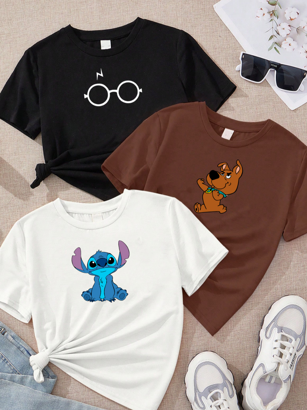 camiseta feminina de algodão kit com 3 Oculos harry baby scoob lilo stitch marrom preta Off white