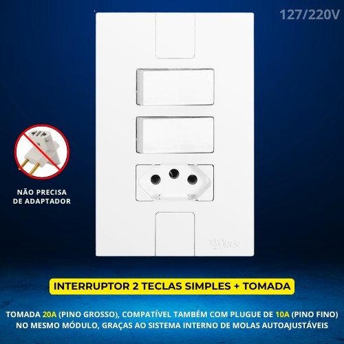 Tomadas e Interruptores 10A 20A Amperes Modular 4x2 Pluzie Kit