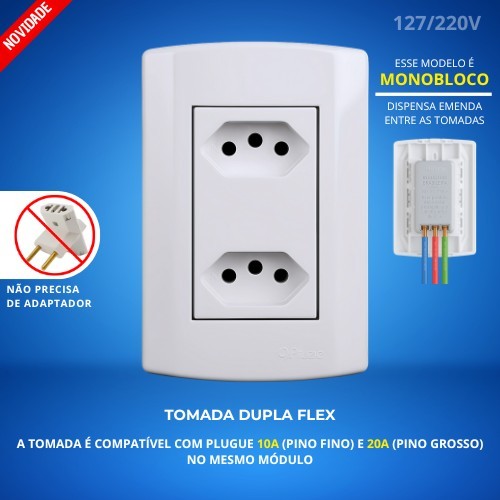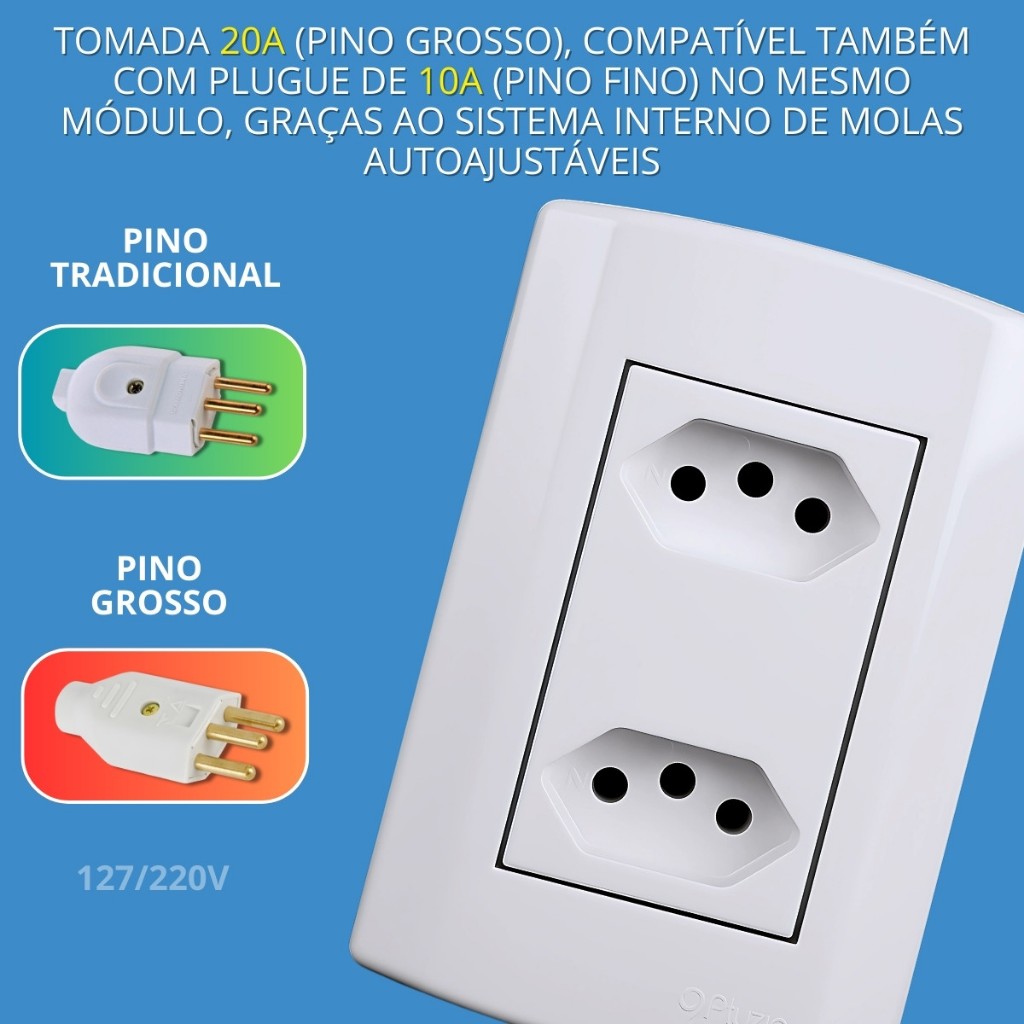 Tomada Dupla 10A 20A Amperes Monobloco Pluzie
